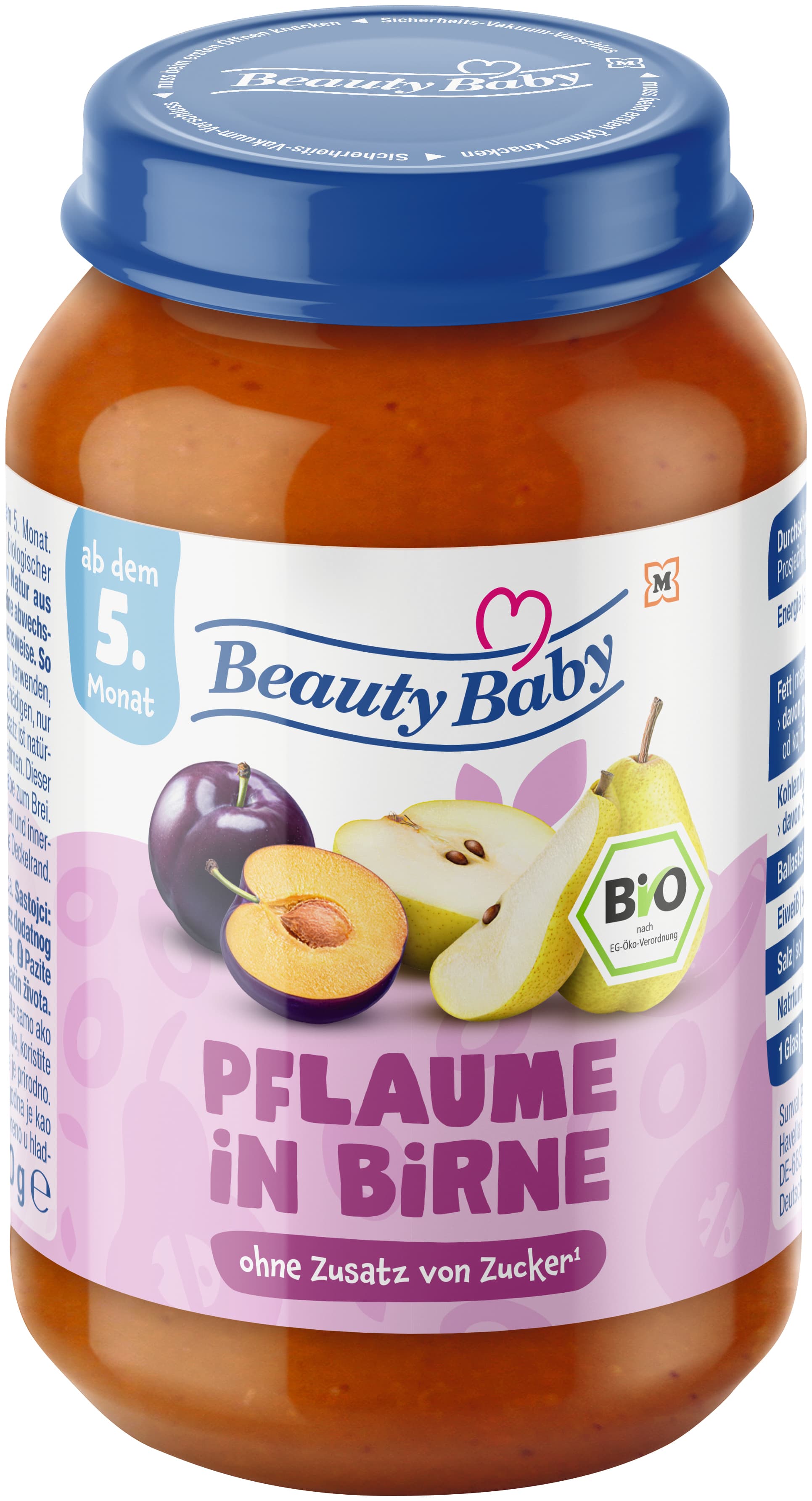 Bio Birnen- und Pflaumenpüree ohne Zusatz von Zucker, ab dem 5. Monat.