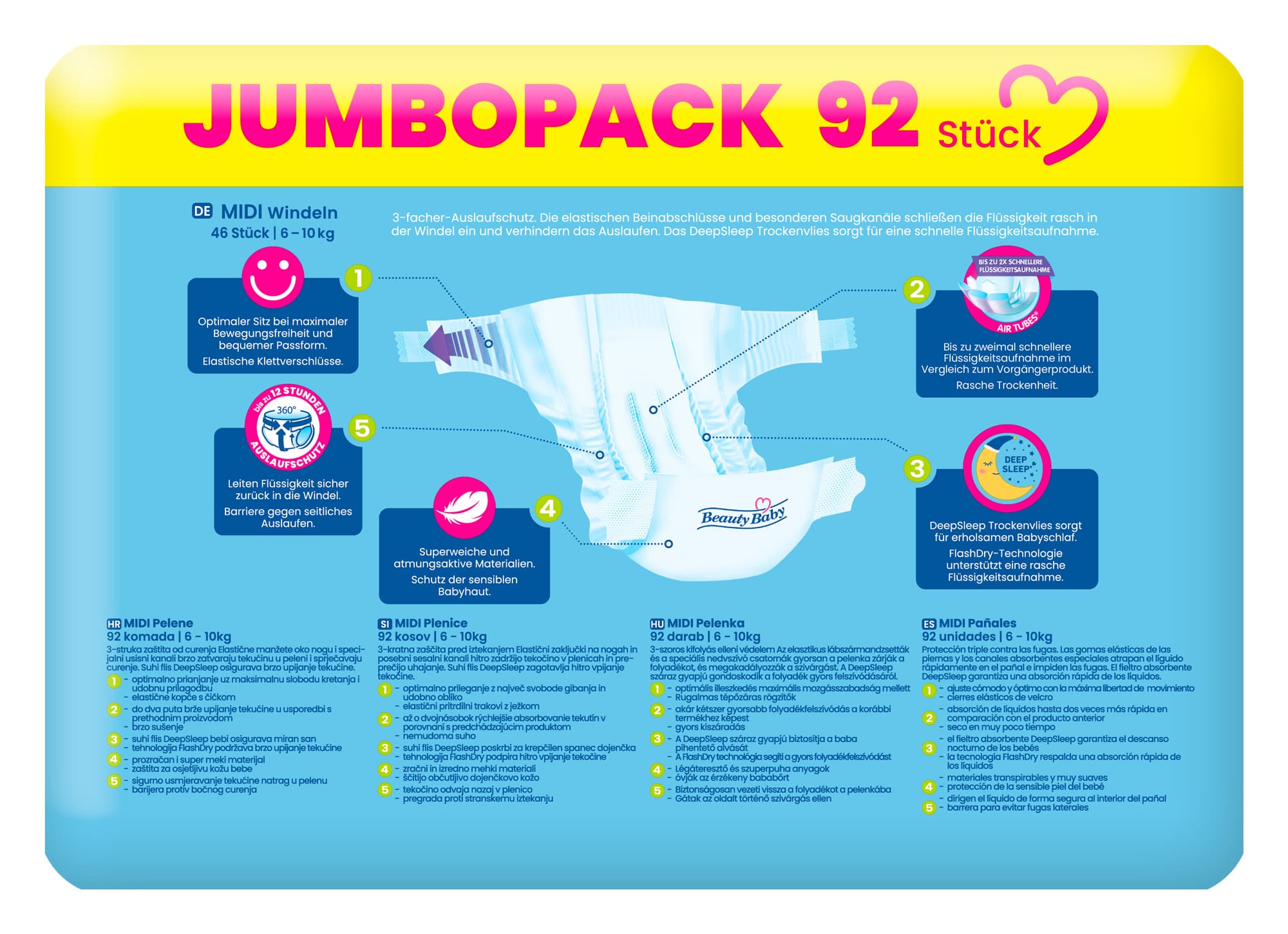 Beauty Baby Premium Dry Windeln sind speziell für die Bedürfnisse Ihres Kindes entwickelt worden.