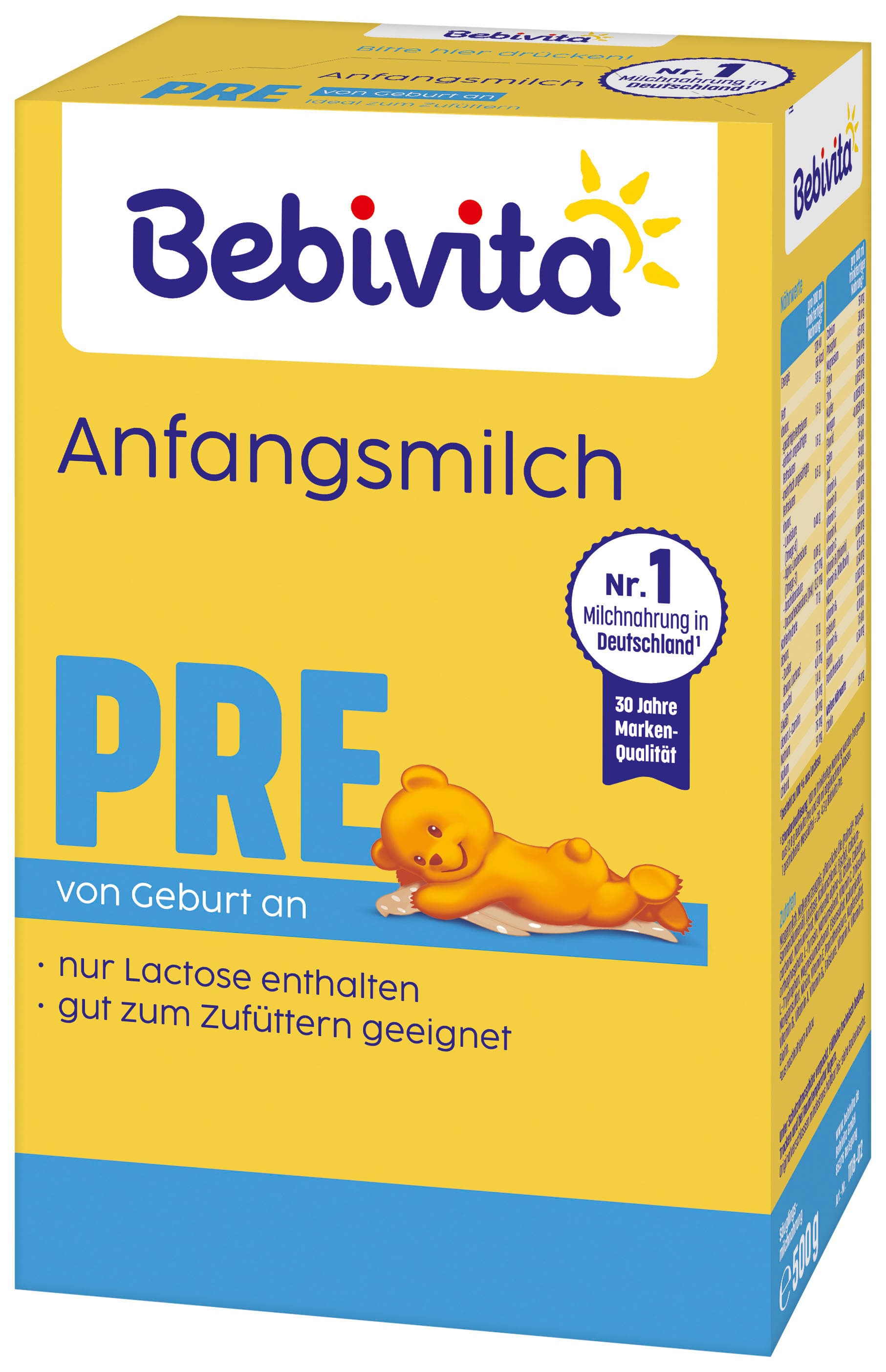 AnwendungshinweisAnwendung Bebivita Pre ist eine Säuglingsmilchnahrung, die ab dem 1. Fläschchen bis zum Ende des Flaschenalters gegeben werden kann: • im Anschluss an das Stillen • in Ergänzung zum Stillen • als alleinige Flaschennahrung von Geburt an Wenn dein Baby von der Bebivita Pre nicht mehr richtig satt wird, kannst du jederzeit Bebivita 1 geben. Bebivita 1 enthält neben Milchzucker (Lactose) auch Stärke, die die Nahrung schön sämig macht. #Originalverschlossen mindestens haltbar bis: siehe Bodenlasche. #Dieses Produkt hat unser Haus in einwandfreien Zustand verlassen. Bitte achte darauf, dass die Verpackung unversehrt geblieben ist.
