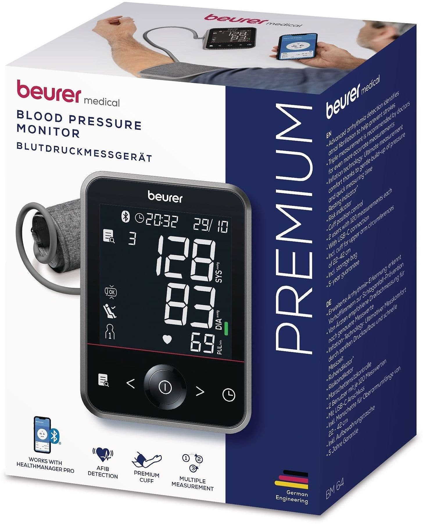 - Mit Premium-Manschette für Oberarmumfänge von 22 - 42 cm