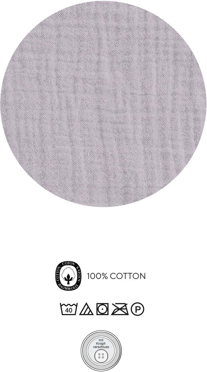 Pflegehinweis40°C Normalwaschgang, Bleichen mit Sauerstoff erlaubt, Nicht Bügeln, Trocknen im Wäschetrockner bis 60°C, Reinigung mit Perchlorethylen