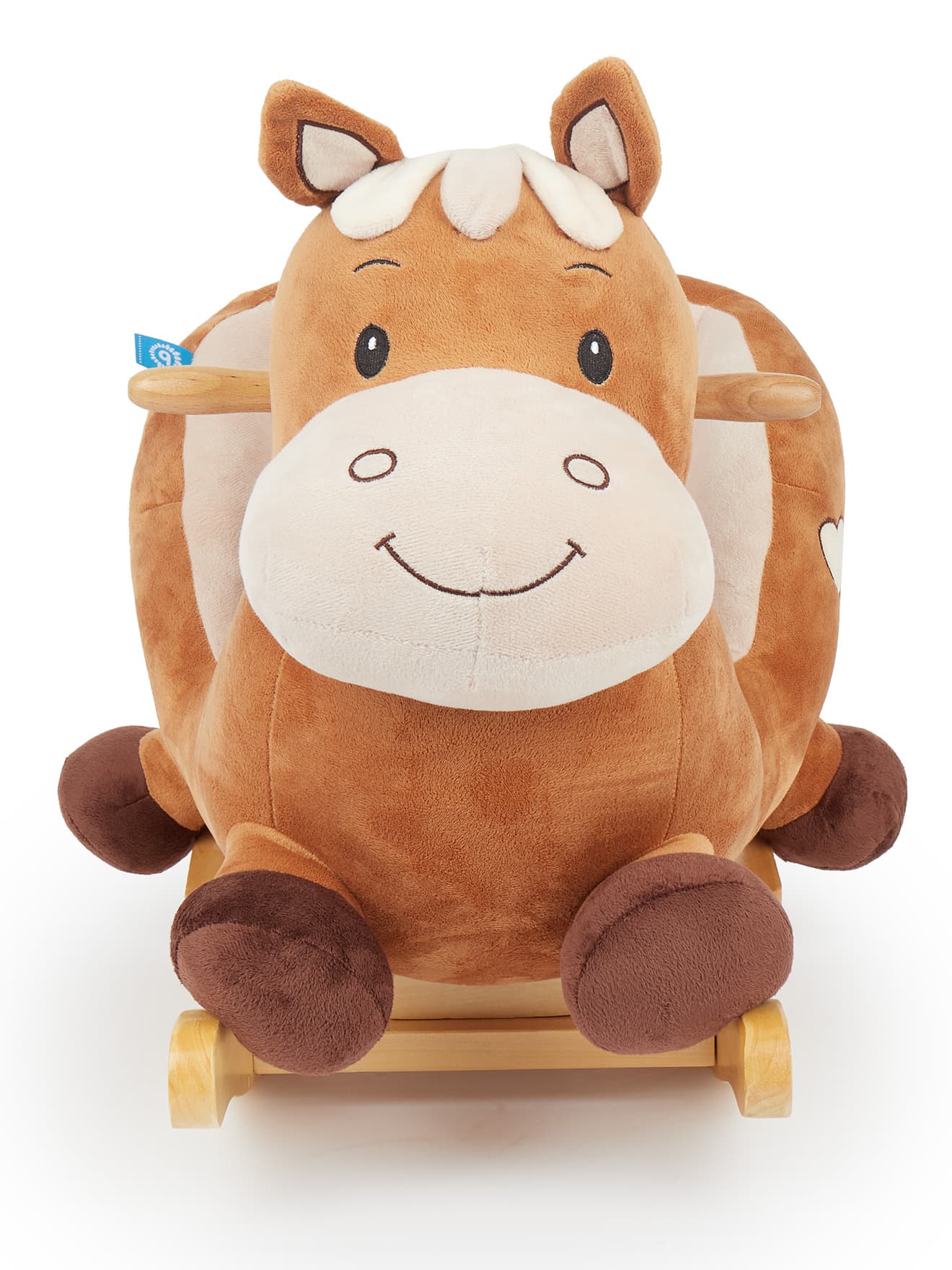 Bringe die Augen Deines Babys zum Strahlen. Diese niedliche Kinder Schaukel in Form eines kleinen Pferdes namens Calimero wird Jungen sowie Mädchen zum Strahlen bringen. Der kleine Freund ist das perfekte Baby Spielzeug ab dem 9. Lebensmonat und gehört in jedes Baby Kinderzimmer. Calimero ist aus kuschelweichem Plüsch und wird deinem Baby ein guter Freund und treuer Begleiter sein, der viel Spaß, Freude und Lachen bringt. Das Schaukeltier hat eine gut gepolsterte Sitzschale mit Sicherheitsgurt für Komfort und maximale Sicherheit. Das Schaukelgestell ist aus massivem Holz und verfügt über einen Kippschutz. Zum Festhalten beim Schaukeln sind zwei Haltegriffe angebracht und die Füße können auf den Fußstützen abgesetzt werden. So können die Kleinen sicher und unbekümmert schaukeln. Der Bewegungsdrang und die Motorik werden gefördert und der Gleichgewichtssinn trainiert. Ein Pferde Spielzeug, welches in jede Baby Erstausstattung Mädchen sowie Erstausstattung Junge gehören sollte. Die Maße des Babyspielzeug betragen ca. 60x 36x 48 cm, die Sitzhöhe liegt bei ca. 14 cm, es wiegt etwa 4 kg und kann mit bis zu 26 kg belastet werden. Finde genau das richtige Schaukeltier für deinen Liebling, zum Beispiel den Schaukel Dino oder den Schaukel Esel. Die Marke Bieco steht seit vielen Jahren für höchste Qualität und innovative Produktentwicklung. Unsere Spielwaren für Babys und Kleinkinder unterliegen allesamt den strengsten Richtlinien deutscher Produkt- und Sicherheitsstandards. Bieco möchte Kindergesichter zum Leuchten bringen, deshalb werden alle Designs für unsere Kleinen mit Liebe gefertigt. Artnr: 74004007