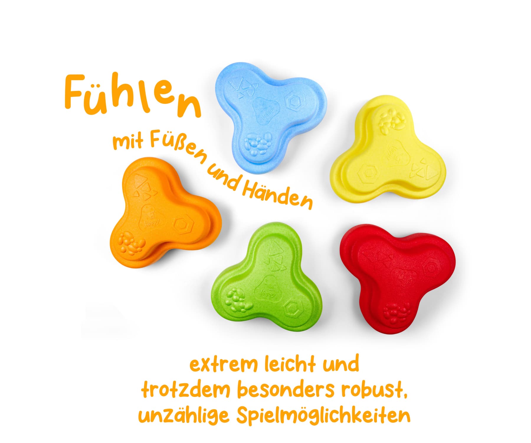• Vielseitig einsetzbar – Als Balancierpfad, Hürde oder ganze Bewegungslandschaft – die sensorischen Spielsteine regen zur Bewegung und zum kreativen Spiel an.