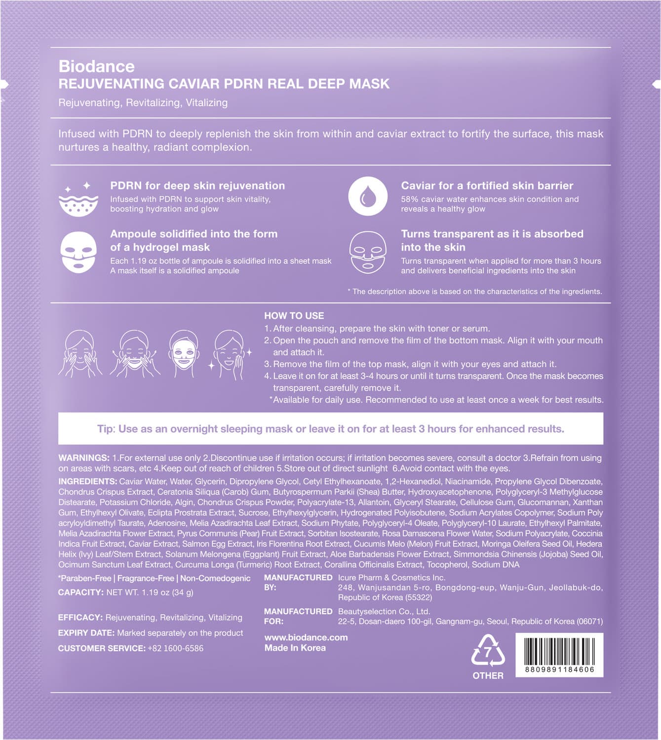 BIODANCE Rejuvenating Caviar PDRN Real Deep Mask