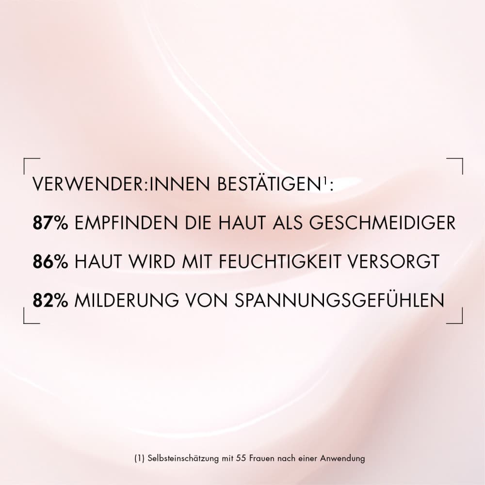Inhaltsstoffe863427 30 - INGREDIENTS: AQUA / WATER / EAU • DIMETHICONE • GLYCERIN • BUTYROSPERMUM PARKII BUTTER / SHEA BUTTER • PRUNUS ARMENIACA KERNEL OIL / APRICOT KERNEL OIL • ALCOHOL DENAT. • AMMONIUM POLYACRYLOYLDIMETHYL TAURATE • MANNOSE • TOCOPHERYL ACETATE • PANTHENOL • GLYCINE SOJA OIL / SOYBEAN OIL • CENTELLA ASIATICA EXTRACT • CERAMIDE NP • GLYCERYL LINOLEATE • GLYCERYL LINOLENATE • GLYCERYL OLEATE • GLYCERYL STEARATE • DIMETHICONE/VINYL DIMETHICONE CROSSPOLYMER • DIMETHICONOL • PEG/PPG/POLYBUTYLENE GLYCOL-8/5/3 GLYCERIN • SODIUM HYDROXIDE • SODIUM LAURYL SULFATE • 2-OLEAMIDO-1,3-OCTADECANEDIOL • CHOLESTEROL • ADENOSINE • MAGNESIUM GLUCONATE • HYDROXYPALMITOYL SPHINGANINE • CAPRYLYL GLYCOL • VITREOSCILLA FERMENT • CITRIC ACID • TRISODIUM ETHYLENEDIAMINE DISUCCINATE • MENTHOXYPROPANEDIOL • ACRYLATES/STEARETH-20 METHACRYLATE COPOLYMER • TOCOPHEROL • PHENOXYETHANOL • CI 14700 / RED 4 • CI 19140 / YELLOW 5 • LINALOOL • LIMONENE • PARFUM / FRAGRANCE (F.I.L. N70026721/1).