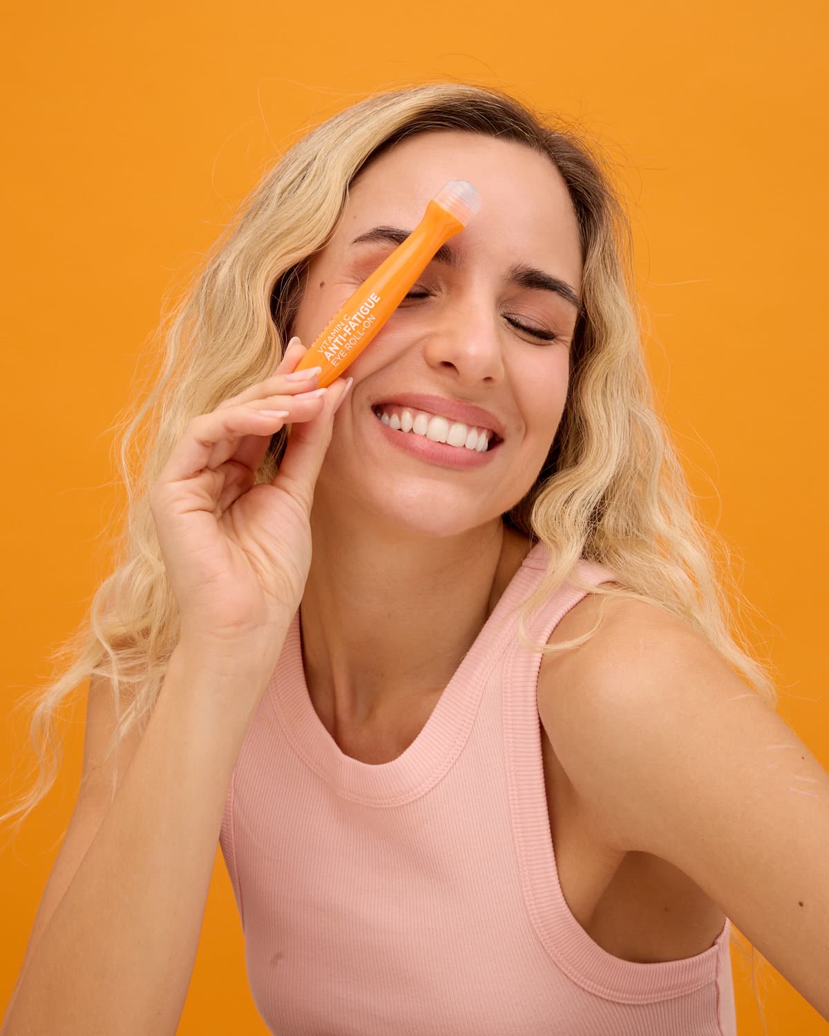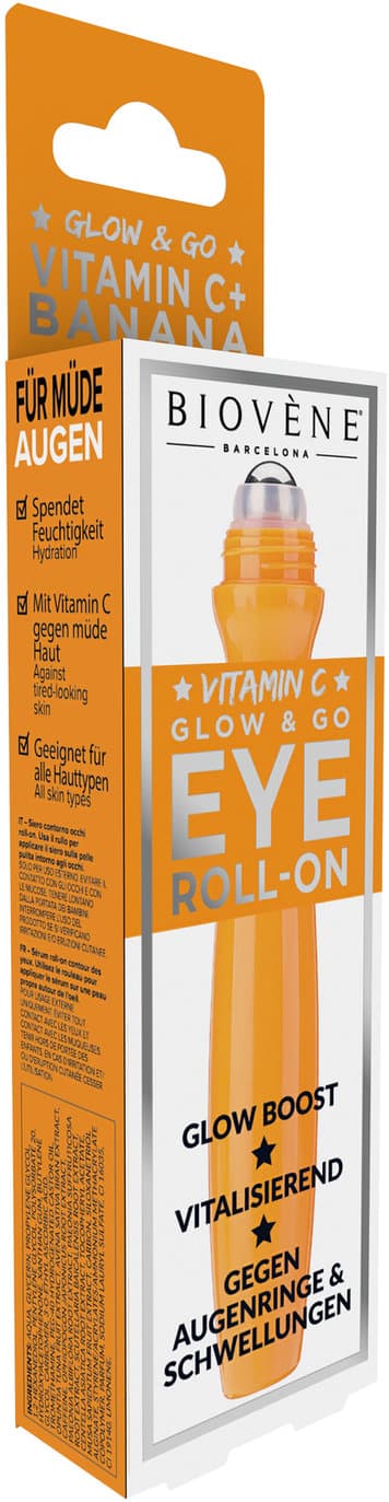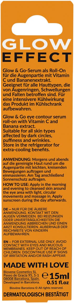 Glow & Go Serum als Roll-On für die Augenpartie mit Vitamin C und Bananenextraxt. Geeignet für alle Hauttypen die von Augenringen, Schwellungen und Falten betroffen sind.