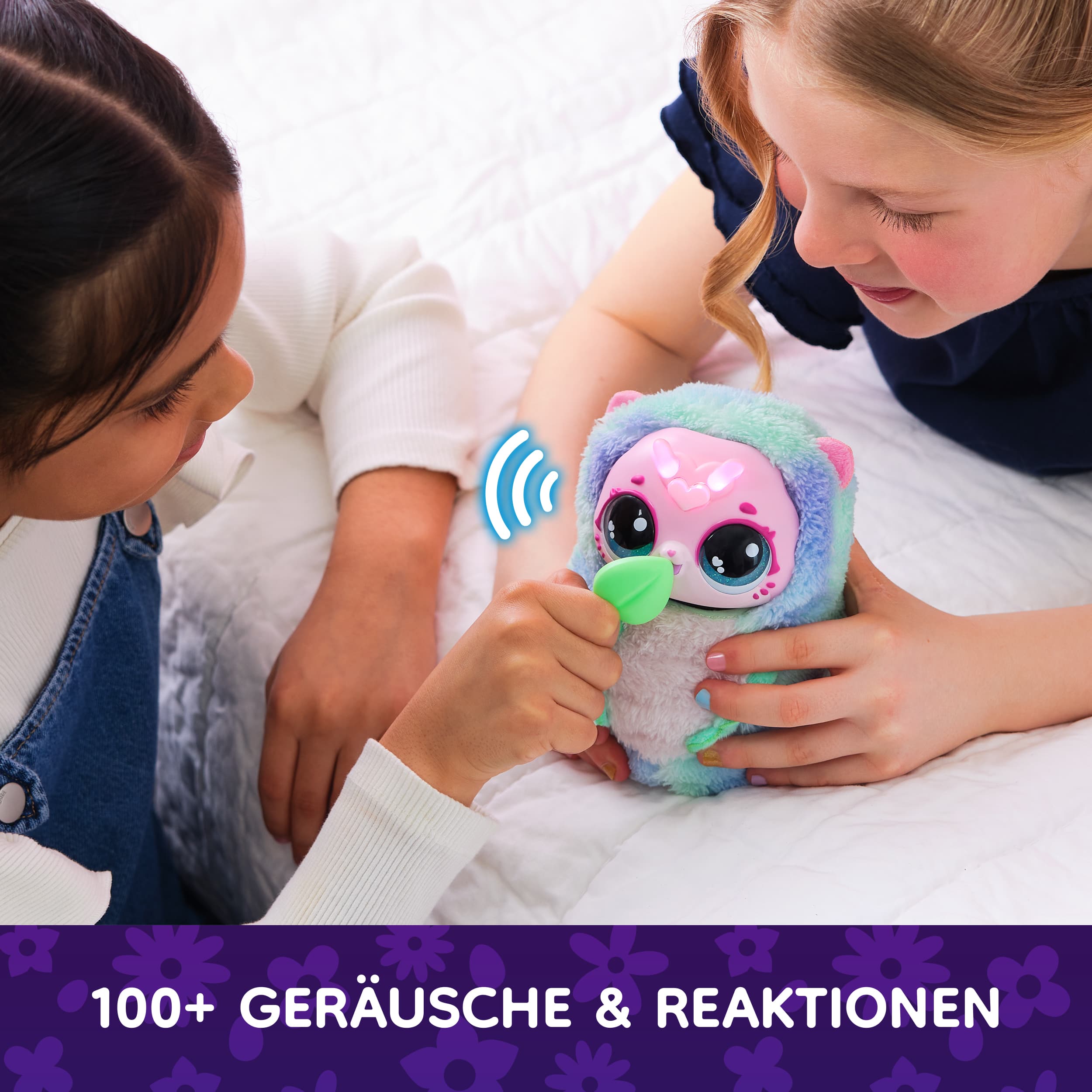 Jetzt wird’s zauberhaft: mit den Bloomables, den magischen Kreaturen aus Hatchtopia. Alles beginnt mit einer Blüte. Gießt man sie, leuchten magische Lichter auf und Geräusche erklingen – und die Blume öffnet sich. Zum Vorschein kommt ein süßer Hatchipillar, der mit Liebe großgezogen wird: Spielen, Füttern, Kitzeln oder Kuscheln. Ist er bereit, verwandelt er sich in eine von zwei Kittyflys – welche, bleibt eine Überraschung. Ist es Rosy in Pink oder Violet in Lila? Beide sehen zuckersüß aus, sind aus weichem Plüsch und besitzen bunt glitzernde Regenbogenflügel. Langweilig wird es mit keinem der Beiden: mit über 100 Geräuschen und Reaktionen, Singen, Musik spielen oder sogar Wahrsagen sind die Spielmöglichkeiten unbegrenzt. Das Aufblühen und die Verwandlung können beliebig oft wiederholt werden. Für noch mehr Spaß ist von Spin Master auch das Puppyfly separat erhältlich.