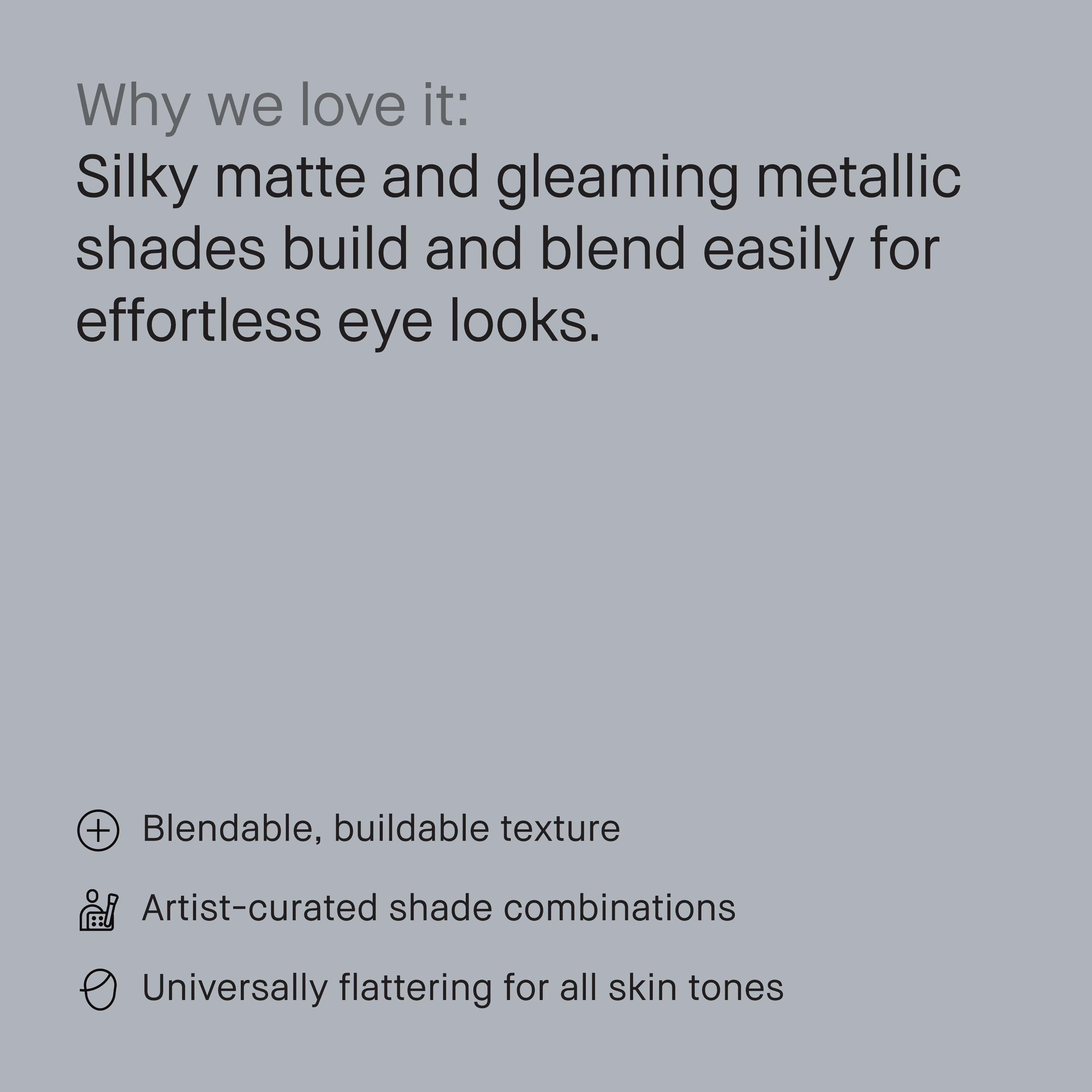• Metallische Lidschatten mit multidimensionale Pigmenten, die für eine satte Tiefe und hochmetallischen Glanz sorgen
