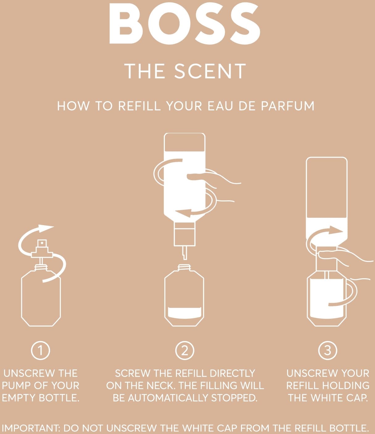 | Anwendungshinweis | BOSS The Scent Eau de Parfum for Her auf die Pulspunkte des Körpers sprühen, damit dieses Parfum für Frauen den ganzen Tag lang hält. |