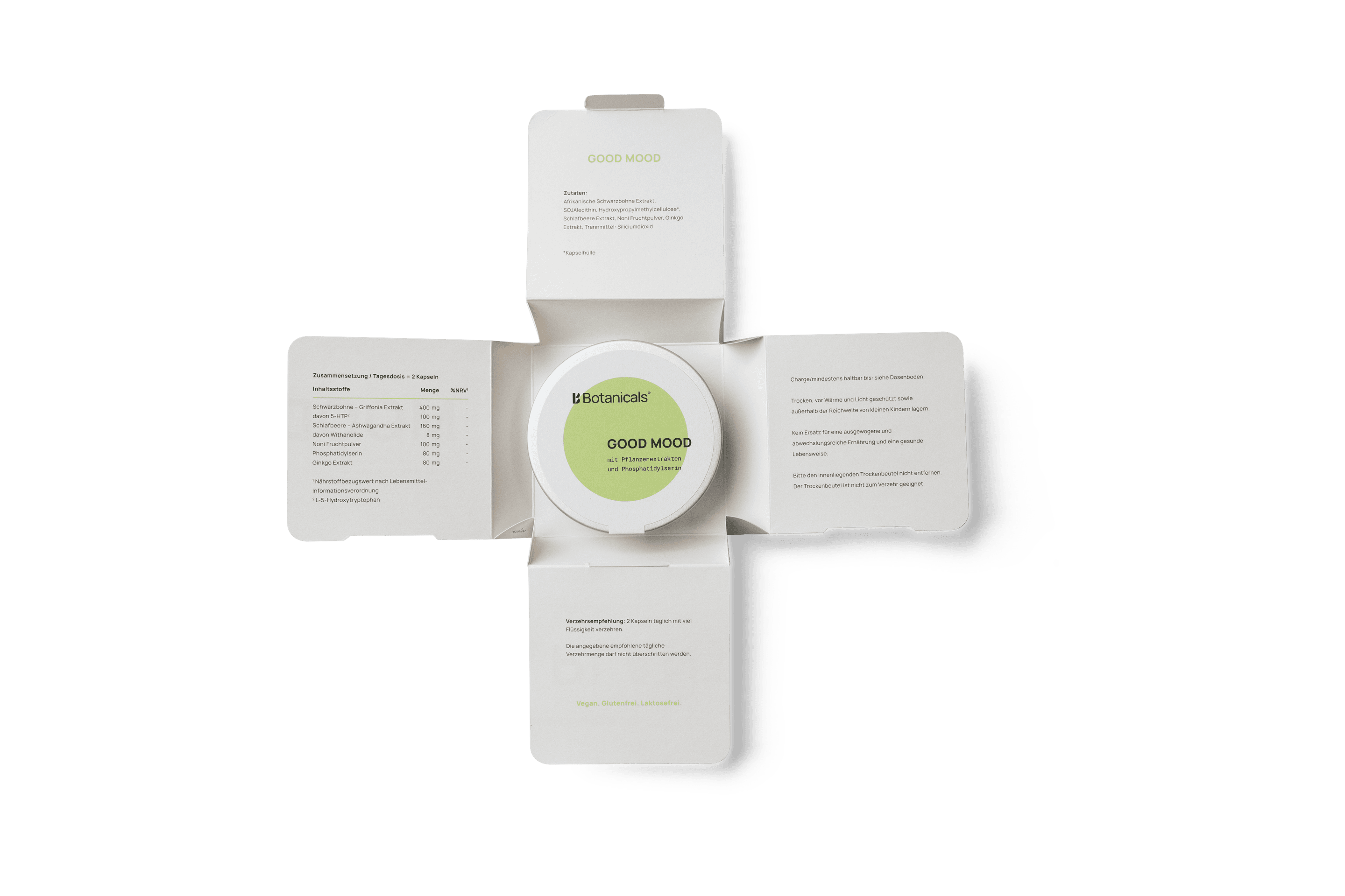 Pflanzen wie Sojabohnen und Sonnenblumenkernen vorkommt. Abgerundet wird Good Mood durch Ginkgo-Extrakt, der seit langem für seine besonderen Eigenschaften geschätzt wird.
