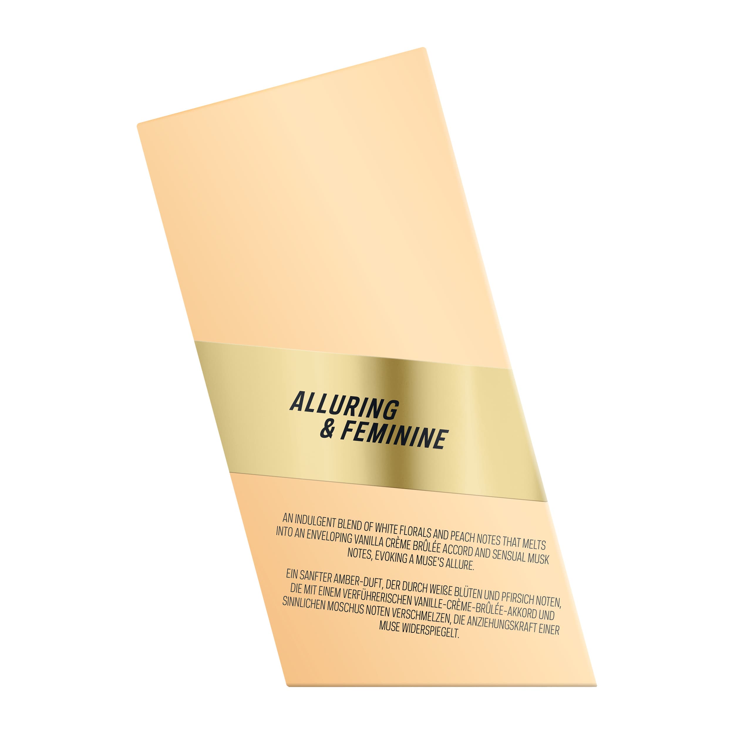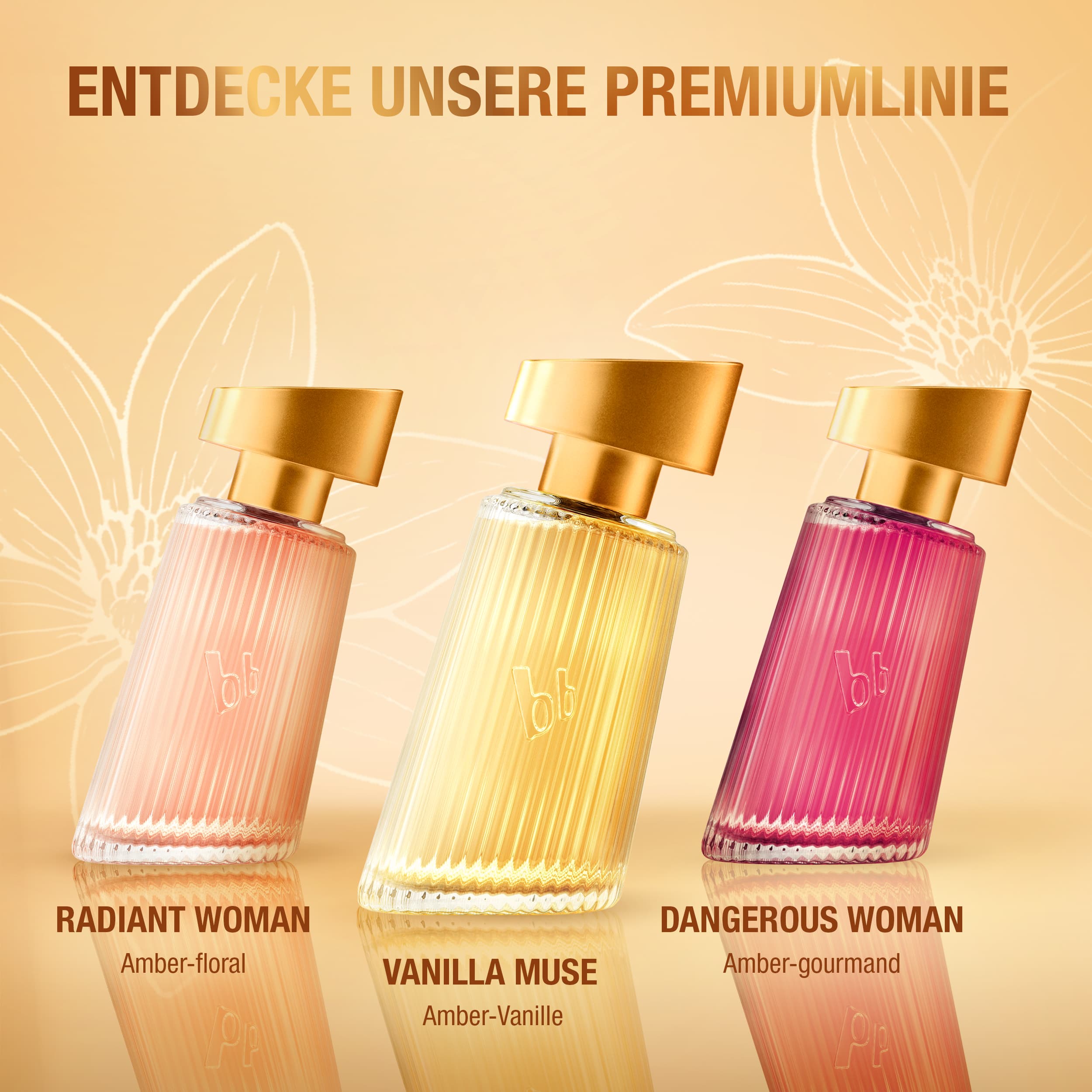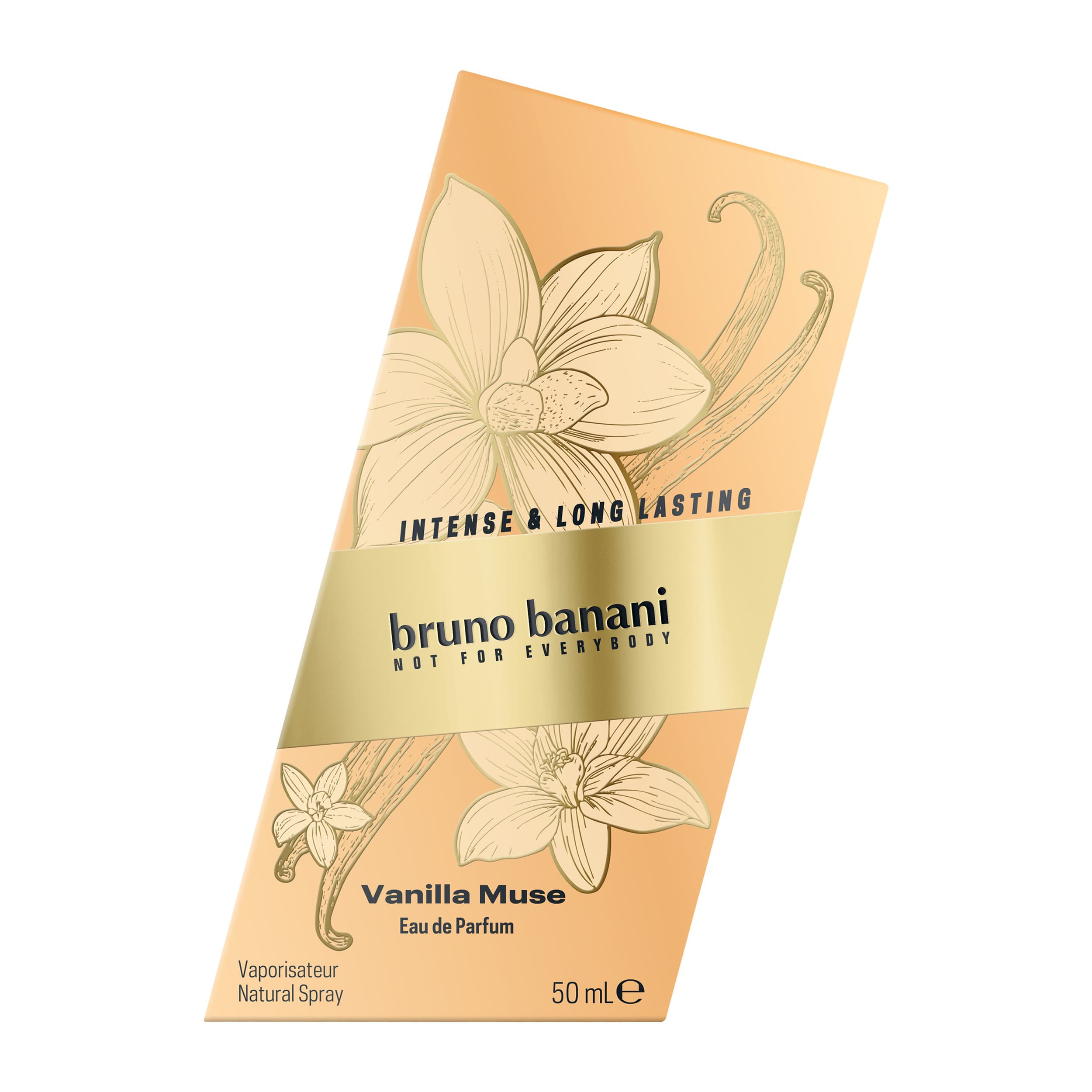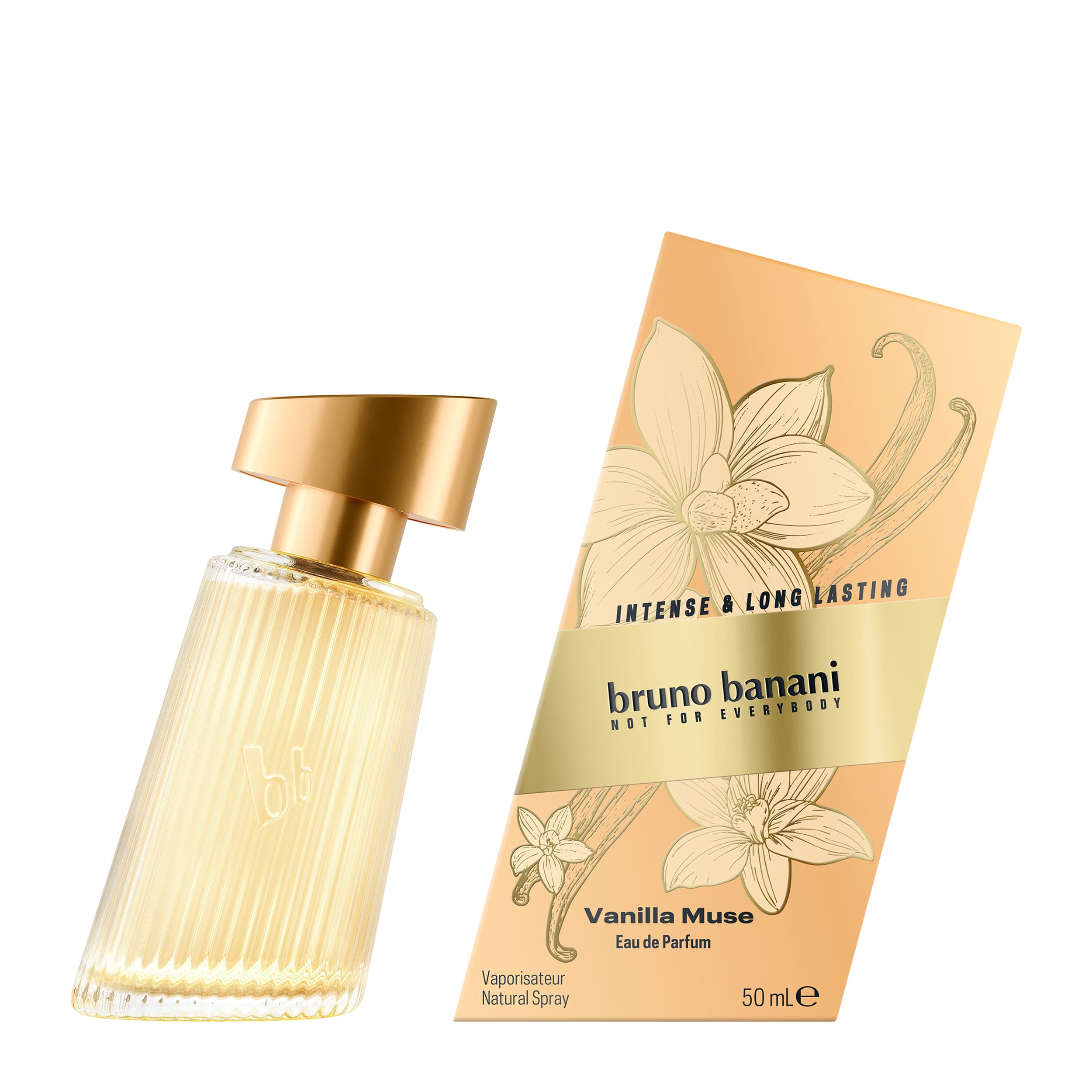 bruno banani Vanilla Muse Eau de Parfum für Sie inspiriert dazu, die Muse in sich selbst zu entdecken. Der langanhaltende, sanfte Amber-Duft mit Vanille offenbart die einzigartige Aura seiner Trägerin in jeder Note. Das Dufterlebnis eröffnet mit einem leuchtenden Ausbruch von frischem Zitronenöl, vermischt mit einem zarten weißen Heliotrop-Akkord. Im Herzen entfalten sich weiße Blüten, begleitet von einem saftigem Pfirsichakkord, der die reiche Komplexität der Vanillenote verstärkt. Schließlich schmiegt sich der Duft in die warme Umarmung eines intensiven und opulenten Vanille-Crème-Brûlée-Akkords, welcher durch Noten von weißem Moschus und Benzoin sinnlich ergänzt wird. Der goldene Farbton des Parfüms und die eleganten Vanilleblüten auf der Verpackung unterstreichen die verführerische Sinnlichkeit des Duftes. Für ein unwiderstehlich-intensives Dufterlebnis lässt sich das bruno banani Vanilla Muse Eau de Parfum mit dem passenden Body & Hair Splash kombinieren.