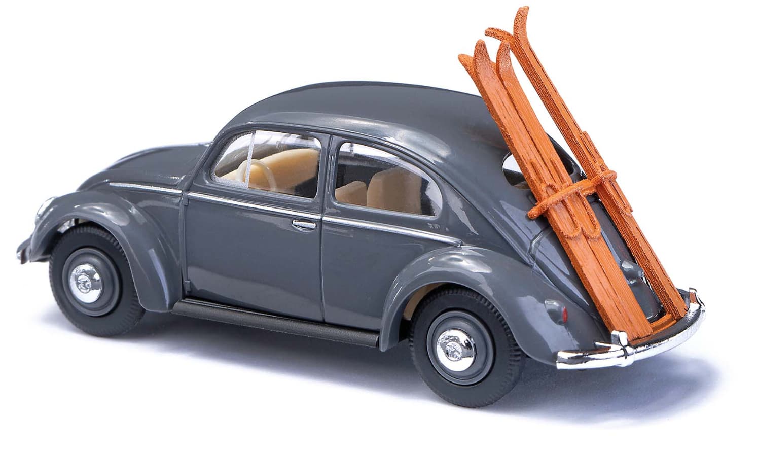 Wohin dieser Käfer unterwegs ist, muss man nicht lange erraten. Die filigranen Skier sind perfekt auf der Heckseite angebracht. Und bald schon heißt es für die Urlauber, auf die Brettln und los…