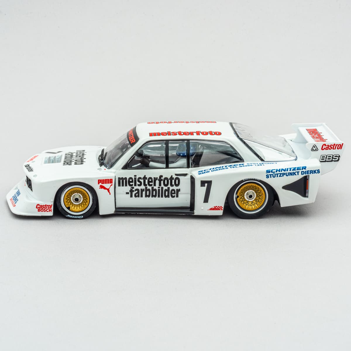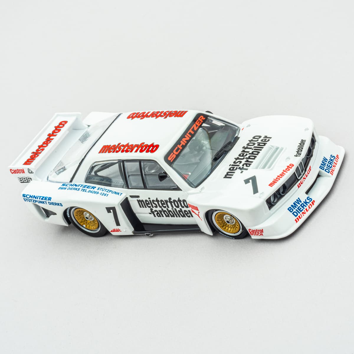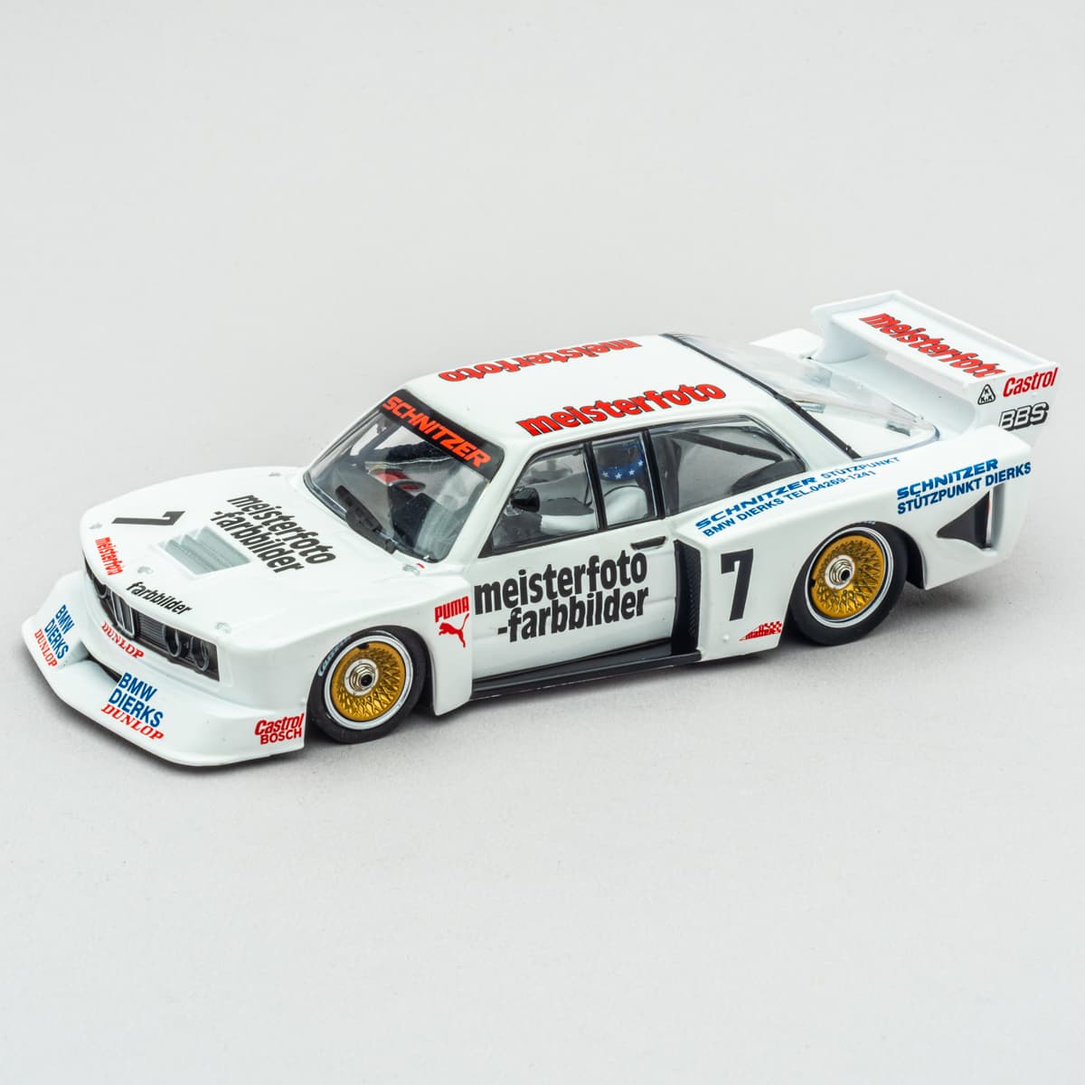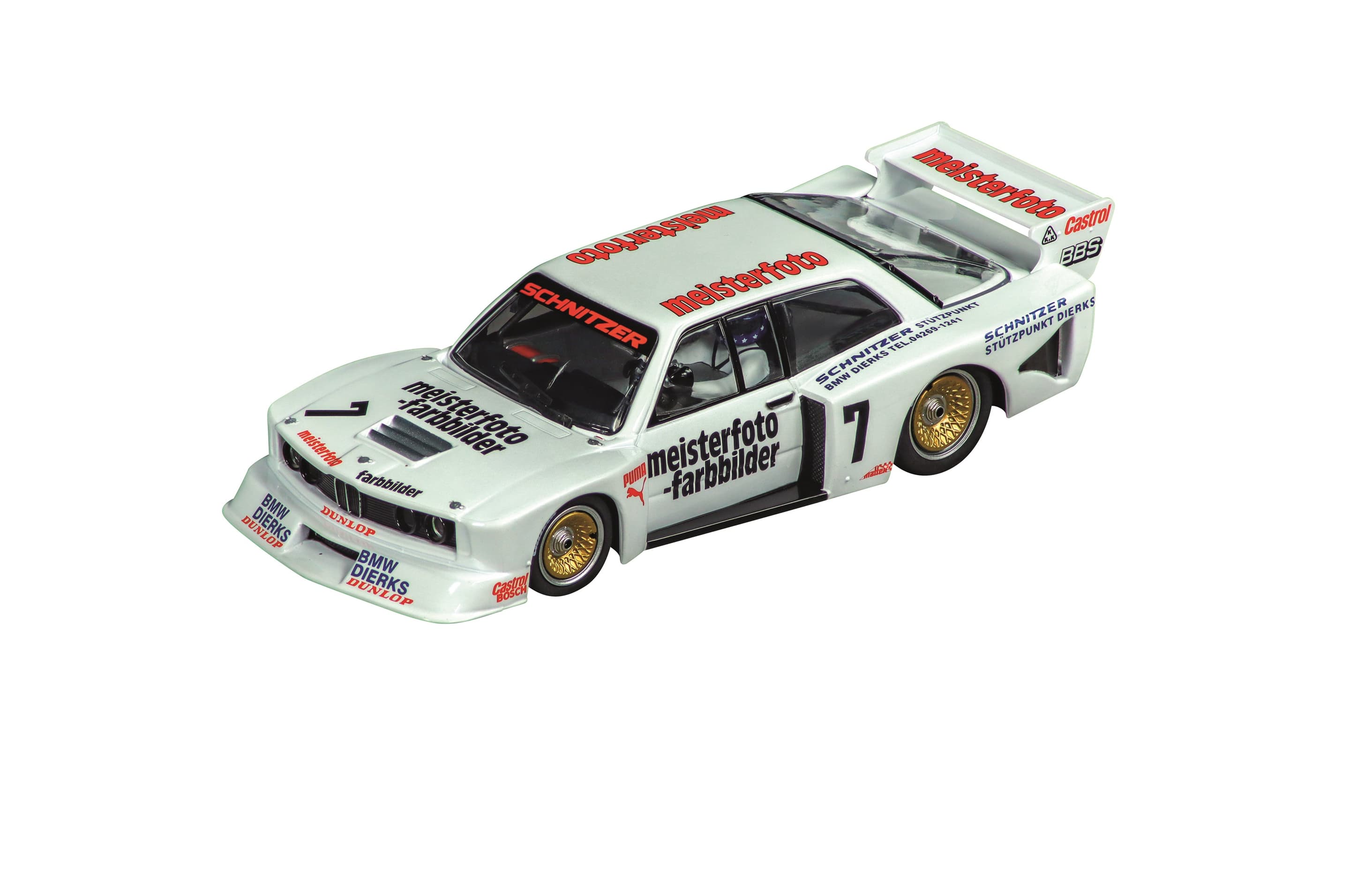 Erfolgreich in der DRM Bei der Deutschen Rennsport Meisterschaft 1980 trat der legendäre Rennfahrer Hans-Joachim „Strietzel" Stuck für das Team Schnitzer aus Freilassing mit der Startnummer 7 an. Mit seinem BMW 320 Turbo Flachbau konnte er sich beim Rennen am Nürburgring den ersten Platz auf dem Siegertreppchen sichern, in der Gesamtwertung reichte es am Ende der Saison für die Vizemeisterschaft. Dank der Original-BMW Lizenz sieht das Slotcar von Carrera im Maßstab 1:32 dem Flitzer auf der großen Rennstrecke zum Verwechseln ähnlich. Das weiß lackierte Modell mit dem Logo von Meisterbilder Farbbilder ist mit Front-, Brems- und Rücklicht ausgestattet und kann individuell codiert und digital gesteuert werden. Inhalt: 1 Carrera Digital 132 Fahrzeug, 1 Leitkiel, 2 Ersatzschleifer