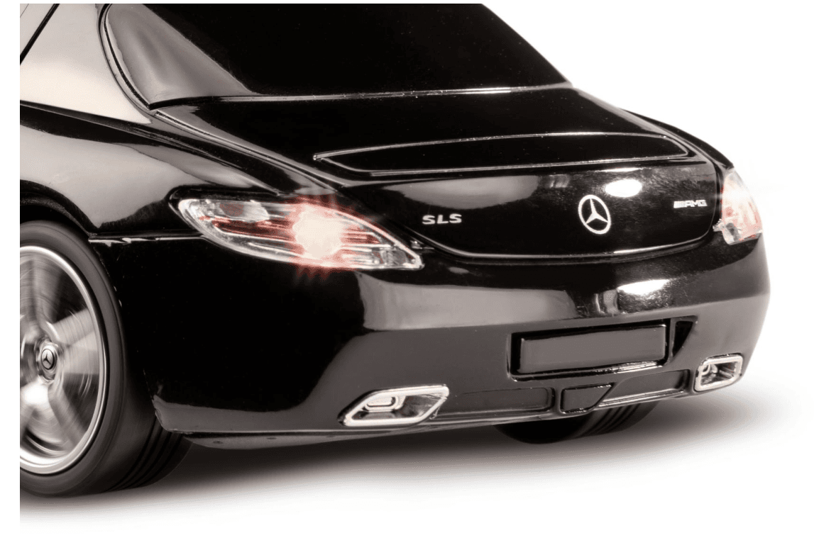 Die LED-Scheinwerfer an Front und Heck geben dem AMG auch bei Dunkelheit eine besonders starke Optik und komplettieren das Design im Detail. Geeignet ist das Fahrzeug für Einsteiger, aber auch eingefleischte Motorsportfans, und Anhänger aller Autos mit Sternlogo.