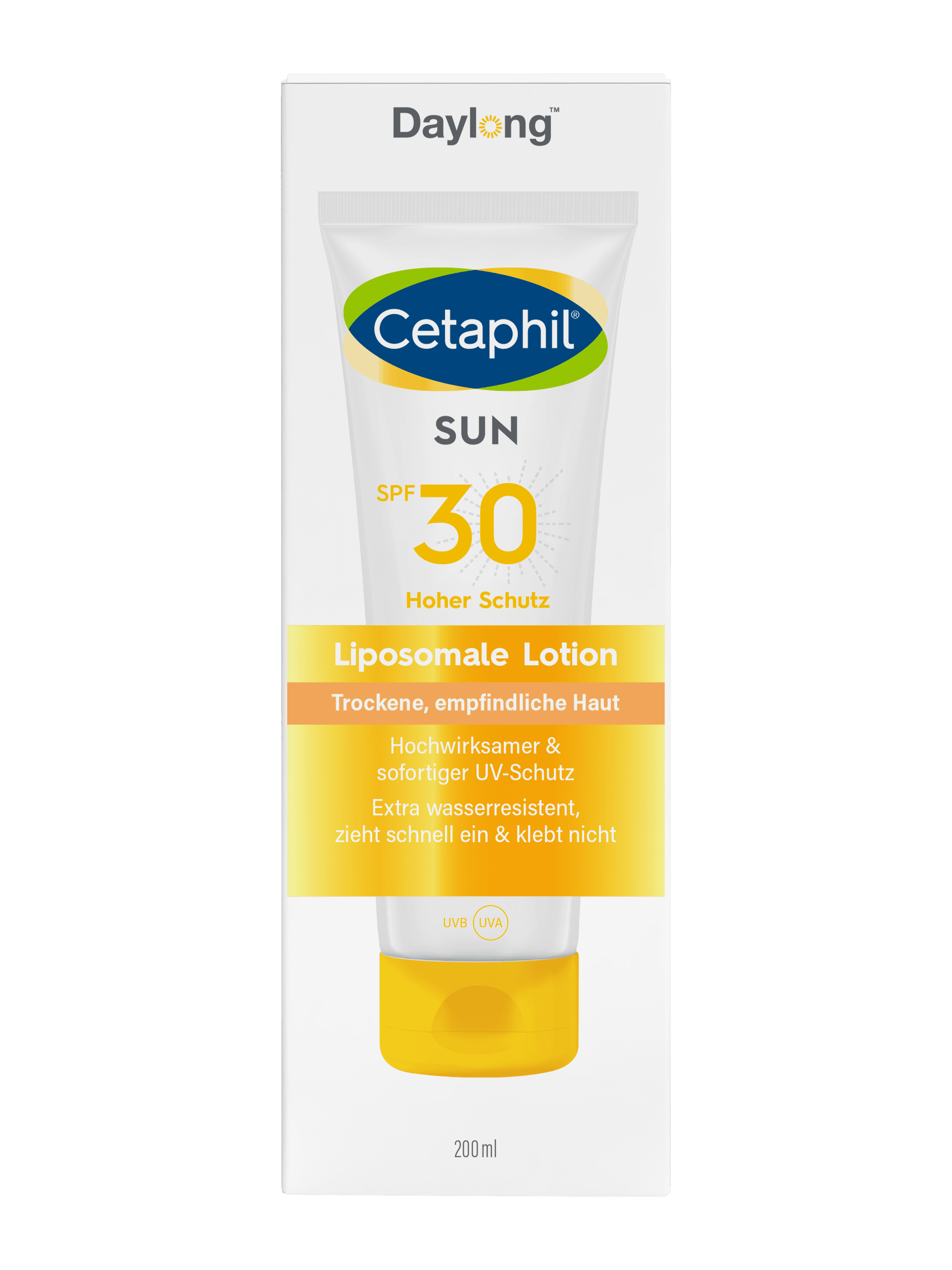 Komfortabel in jeder Hinsicht: Die Cetaphil Sun Daylong Liposomale Lotion SPF30 zieht schnell in die Haut ein und bietet dort sofortigen Schutz. Gleichzeitig spendet die nicht fettende Lotion dank Aloe Vera und Vitamin E Ihrer Haut 24 Stunden lang Feuchtigkeit, so dass eine zusätzliche Feuchtigkeitspflege nicht notwendig ist. Dank der liposomalen Zusammensetzung (hautähnlicher Aufbau der Moleküle) verteilen sich die photostabilen UVA-, UVB- und IR-Filter ganz gleichmäßig in der Haut und schützen damit vor den schädlichen Strahlen und beugen Hautalterung vor.