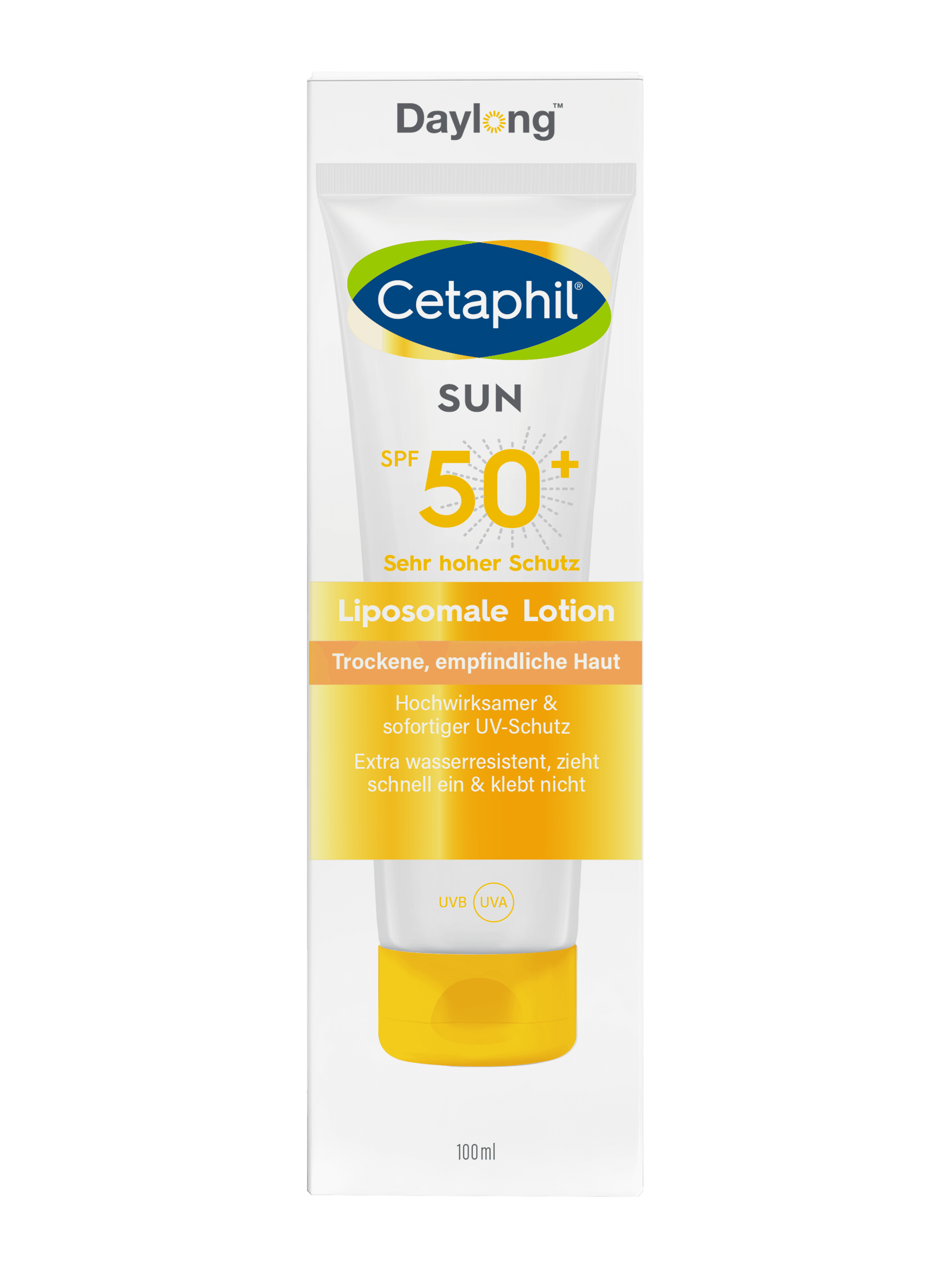 Starker und komfortabler Schutz – die Cetaphil Sun Daylong Liposomale Lotion SPF50+. Photostabile Breitbandfilter schützen die Haut vor UVA-, UVB- und IR-Strahlen und beugen damit auch Hautalterung vor. Die Filter verteilen sich besonders schnell und gleichmäßig in der Haut dank der liposomalen Zusammensetzung (hautähnlicher Aufbau der Moleküle). Die Sonnenlotion zieht schnell ein. Dank Aloe Vera und Vitamin E spendet die nicht fettende Lotion Ihrer Haut Feuchtigkeit über 24 Stunden – eine zusätzliche Feuchtigkeitspflege ist also nicht notwendig.
