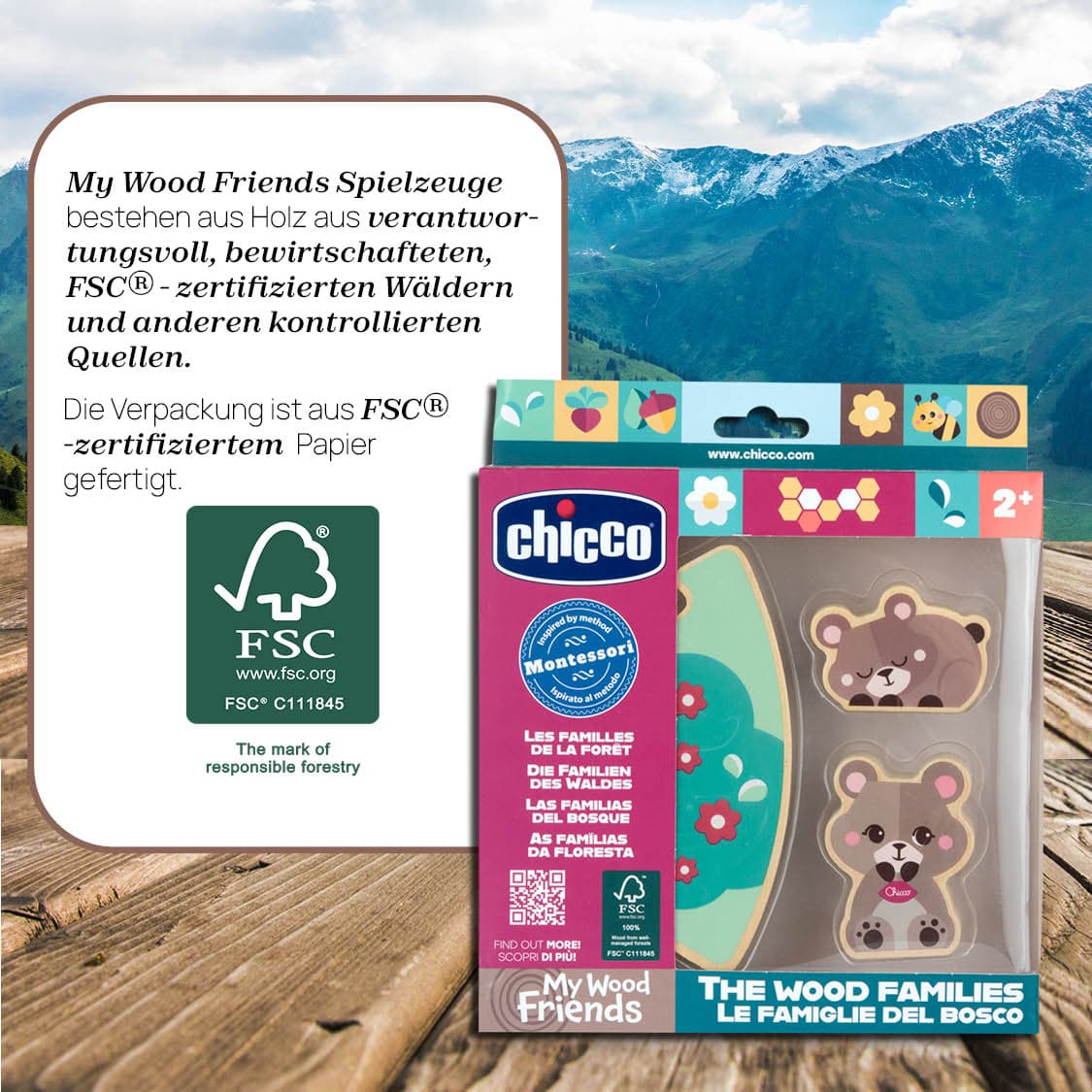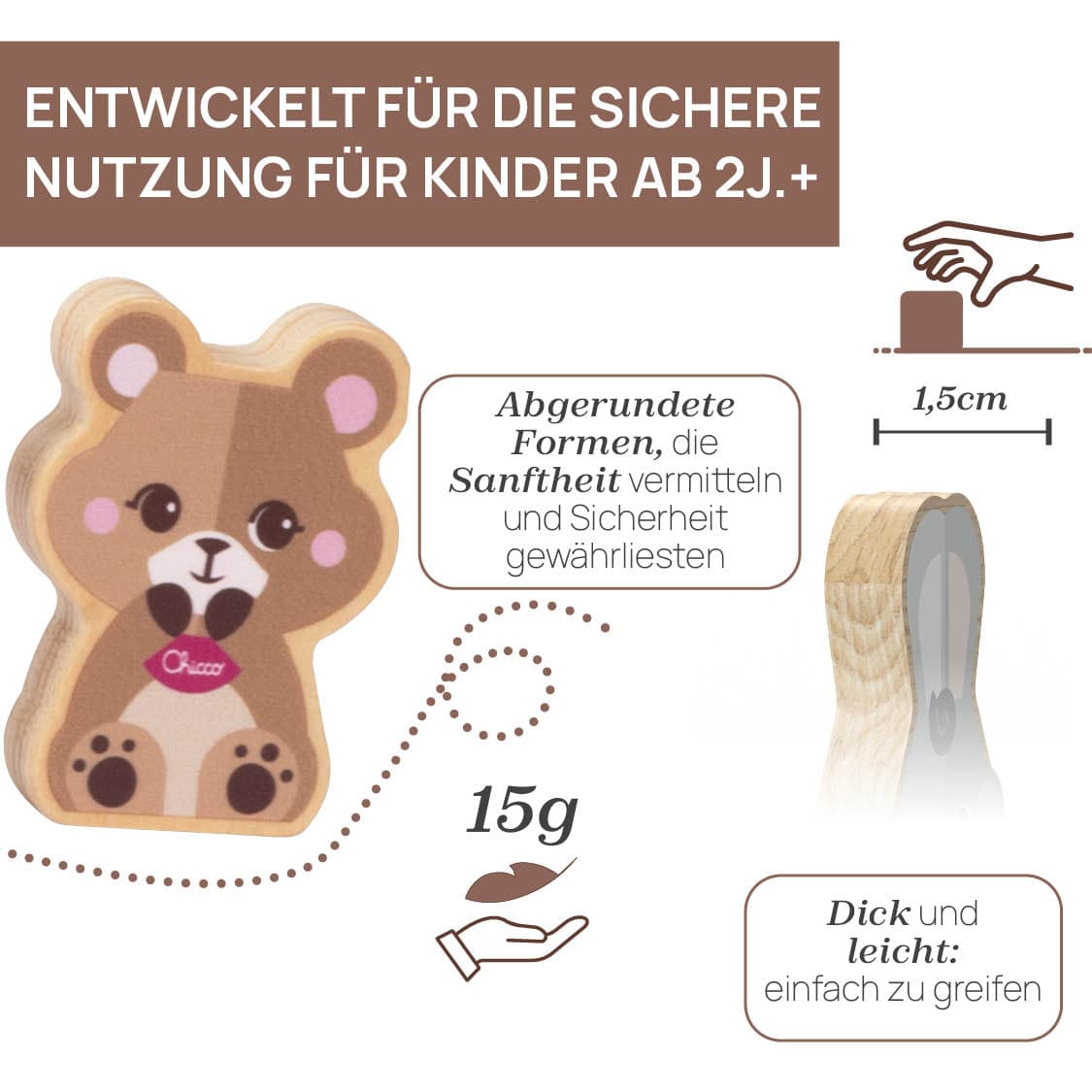 Das Montessori-Spielset „2 Orsetti Mamma“ von Chicco lädt Kinder ab 2 Jahren dazu ein, spielerisch die Welt der Familie und Fürsorge zu entdecken. Die beiden liebevoll gestalteten Bärenfiguren fördern durch Rollenspiele die emotionale Intelligenz und soziale Fähigkeiten. Hergestellt aus nachhaltigem Holz und weichem Stoff, sind sie perfekt für kleine Kinderhände und regen die Fantasie an. Inspiriert von der Montessori-Pädagogik unterstützt das Set die Selbstständigkeit und Kreativität der Kinder.