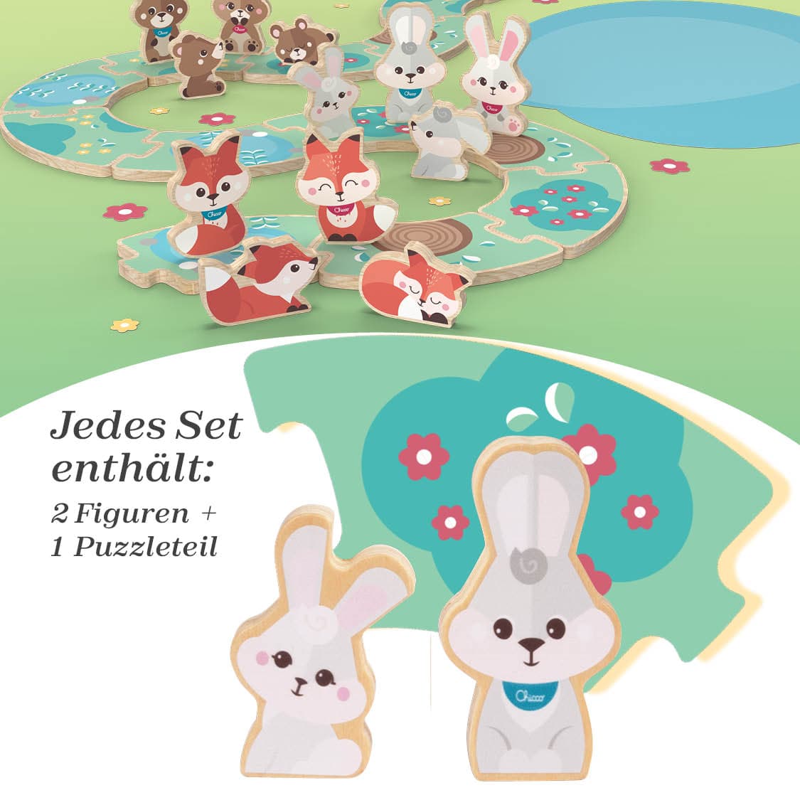 Entdecke das liebevoll gestaltete Montessori-Spielset von Chicco mit zwei süßen Hasenfiguren – ideal für Kinder ab 2 Jahren. Das Set fördert spielerisch die emotionale Entwicklung und soziale Interaktion durch Rollenspiele und Nachahmung familiärer Situationen. Die Figuren sind aus nachhaltigem Holz und weichem Stoff gefertigt und passen perfekt in kleine Kinderhände. Inspiriert von der Montessori-Pädagogik unterstützt dieses Spielzeug die Selbstständigkeit und Kreativität deines Kindes.