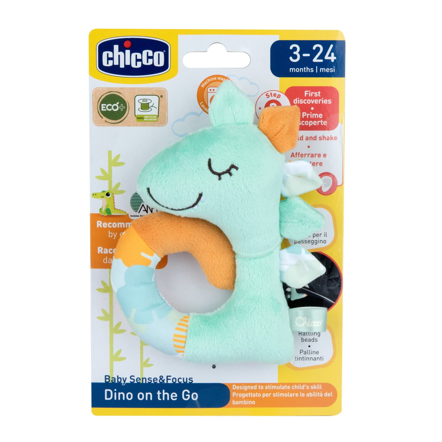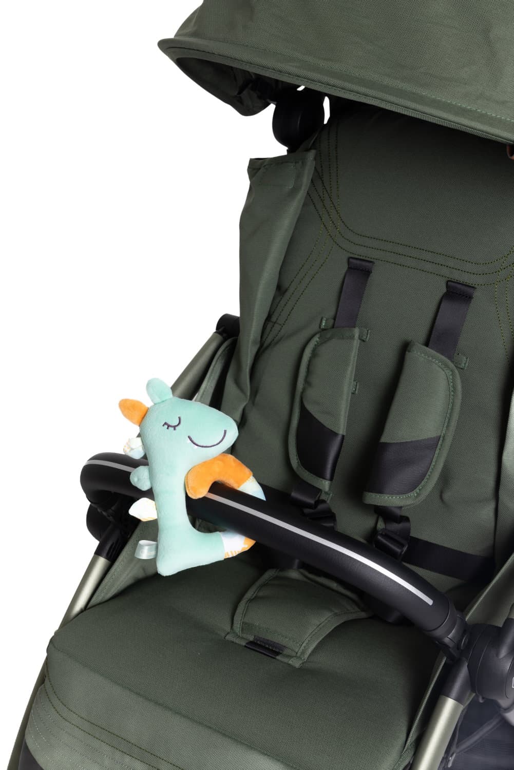Dino on the go: Stoffrasseln aus recyceltem Material – Leicht und in neuer Armbandform, einfach zu greifen • Dino-Stoffrassel: Schütteln, um ein klingelndes Geräusch zu hören, das Babys zum Lachen bringt. • Mit Rasselperlen im Inneren: Sorgt für lustige Klänge und unterhält die Kleinen. • Leicht und handlich: Die neue Form ist ideal für kleine Hände und einfach zu greifen. • Praktische Armbandform: Eltern können die Rassel am Handgelenk tragen und das Baby so jederzeit unterhalten. • Immer dabei: Lässt sich am Kinderwagen befestigen, damit die Rassel stets griffbereit ist. • Hergestellt aus 100 % recyceltem Polyester: Gefertigt aus Kunststoff, der nach Gebrauch recycelt wurde – nachhaltig und umweltfreundlich.