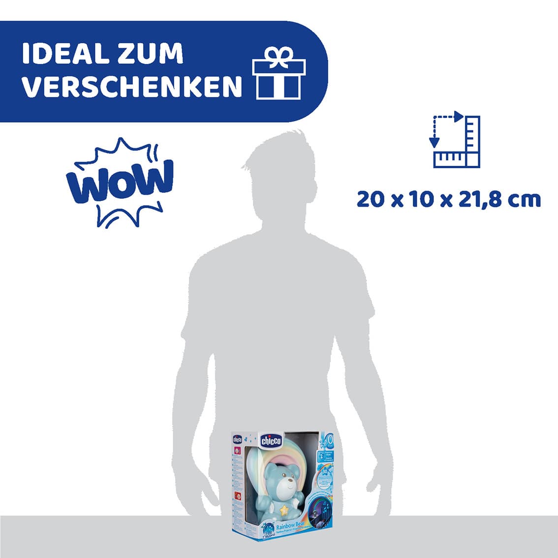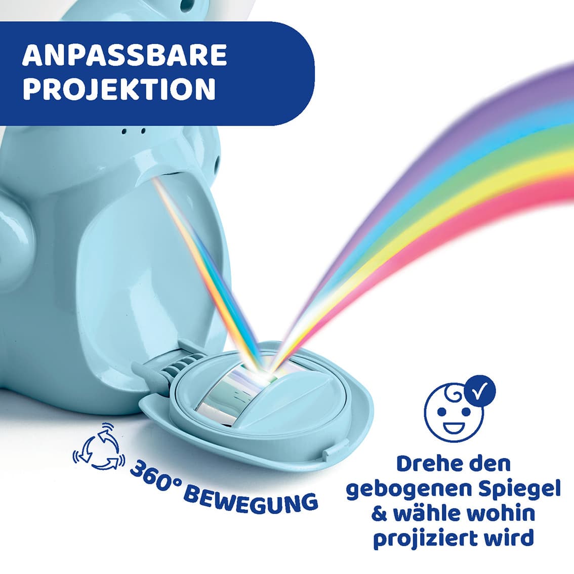 Ein innovativer Tischprojektor mit einem überraschenden und anpassbaren Regenbogenprojektionseffekt an der Wand.Anpassbarer Regenbogenprojektionseffekt an Wand und Decke.- 2 Musikmodi und Regenbogeneffekt: Statischer Regenbogen und klassische Melodien (Mozart und Beethoveen) Der Regenbogen erscheint Farbe für Farbe mit New-Age-- Musikspieldauer: 15-30 Minuten.- Eine Heckklappe mit gebogenem Spiegel, um die Breite und Richtung der Projektion an den Raum und die Position des Objekts anzupassen