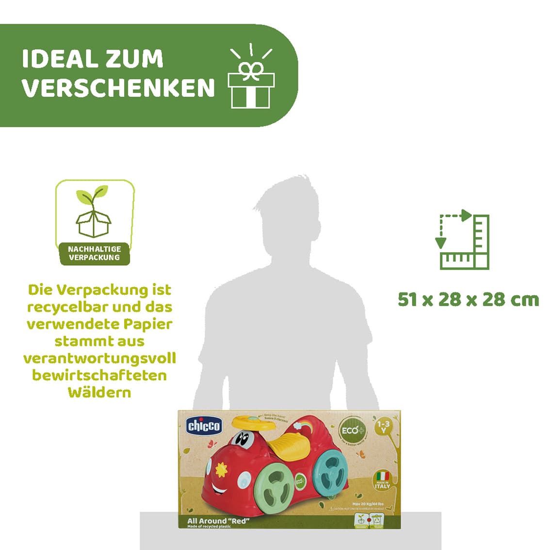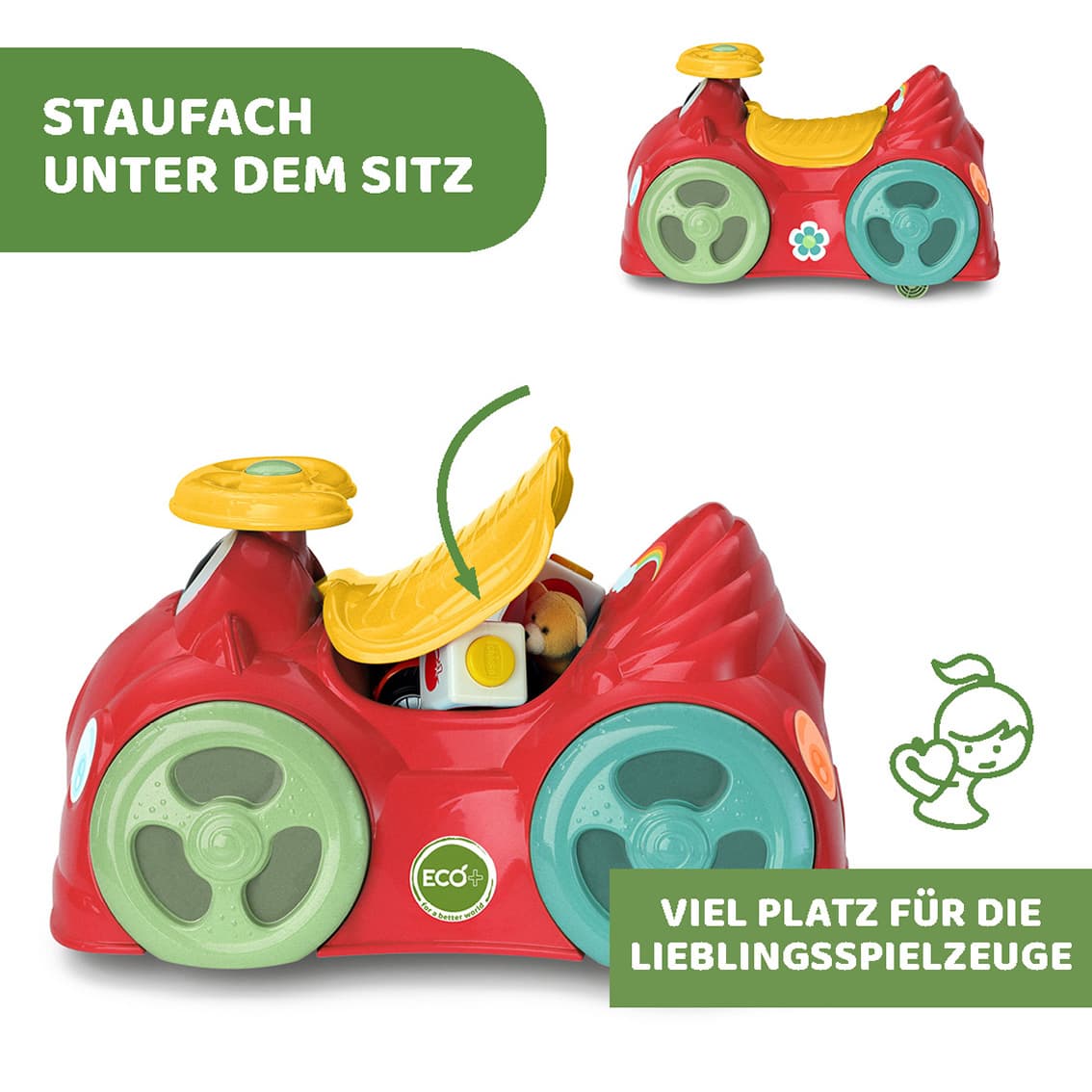 Der Rutscher All Around hilft bei der Entwicklung der motorischen Koordinationsfähigkeiten. Mit den Beinen kann sich das Kind selbst abstoßen und vorwärts bewegen. Die schwenkbaren Räder ermöglichen eine Bewegung in alle Richtungen. Mit mechanischer Hupe am Lenkrad und praktischem Staufach unter dem Sitz. 10 farbige Aufkleber sind im Lieferumfang enthalten, um den Rutscher nach Belieben individuell zu gestalten. Hergestellt aus 75% recyceltem Kunststoff aus industriellem Produktionsüberschuss. Die Verpackung ist recycelbar und besteht aus Papier aus verantwortungsvoll bewirtschafteten Wäldern.