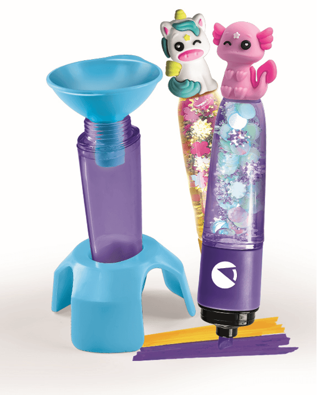 • Ein praktisches und reichhaltig sortiertes Set, das Folgendes enthält: 2 Textmarker, verschiedenfarbige Tinte, Figuren und alle Instrumente, um sie zu gestalten.