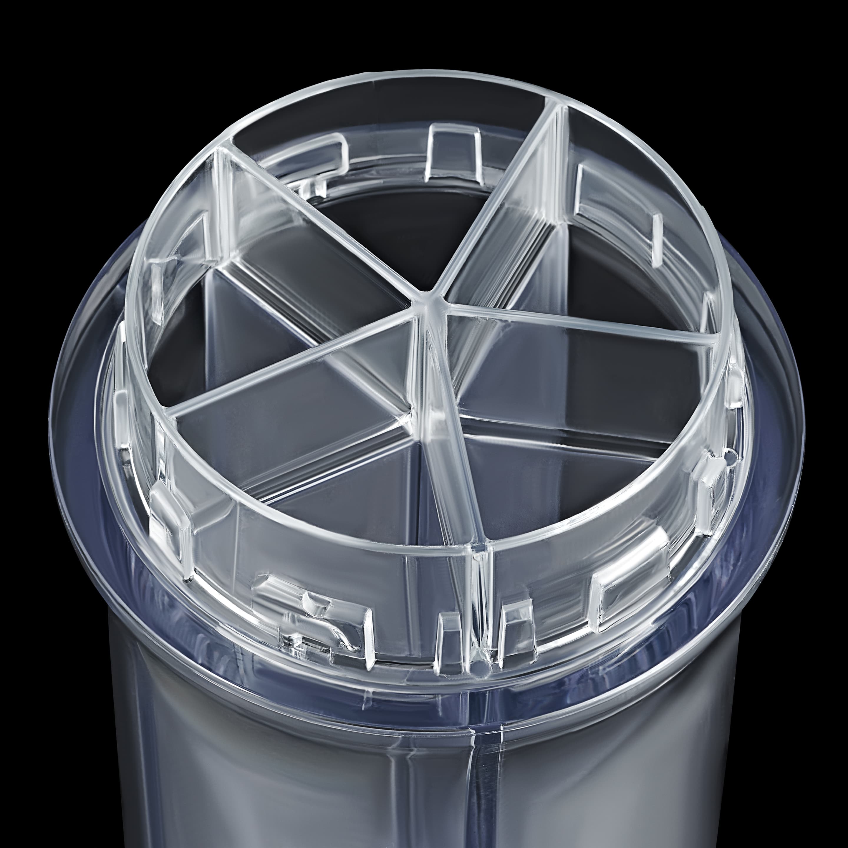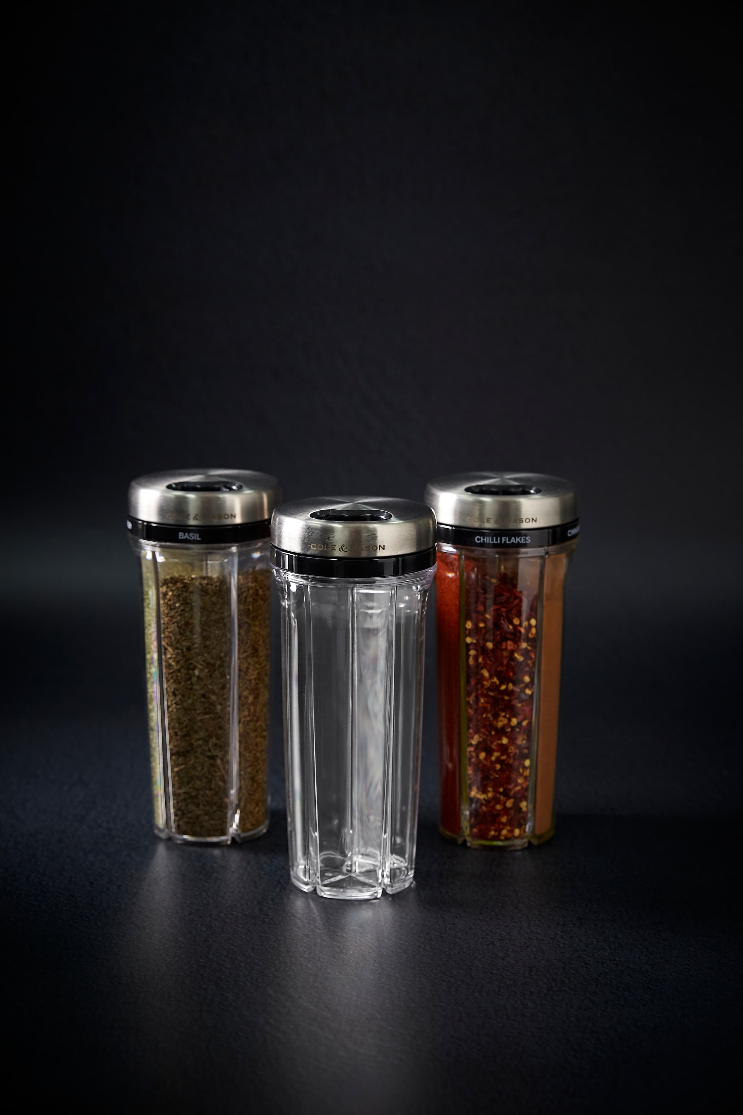 Ein Küchenaccessoire im ansprechenden Design, das moderne Ästhetik mit klassischen Materialien sowie innovativen Funktionen kombiniert und einfach zeitlos ist. Schönheit und Funktion halten sich die Waage. Der Deckel aus Edelstahl ist die perfekte Ergänzung zum Körper aus Acryl, der Ihre Lieblingsgewürze ansprechend präsentiert. In England von wahren Feinschmeckern entworfen und umgesetzt, macht er die Küche zu einem besseren Ort. Wenn Sie den Spender verwenden möchten, wählen Sie einfach eine der fünf gekennzeichneten Kammern und stellen Sie ihn auf Streuen oder Schütten ein. Anschließend können Sie Ihr Gericht würzen. Eine tolle Lösung, um Ordnung in Ihre Küchenschränke zu bringen: Alle Spender von Saunderton fassen fünf Gewürzgefäße in Standardgröße für Kräuter oder Gewürze und benötigen viel weniger Stellfläche im Schrank. Saundertons eignen sich perfekt für alle Kräuter und gemahlenen Gewürze sowie eine Vielzahl anderer Trockenpulver und sonstiges – von Kuchenstreusel über gemahlenen Kaffee bis hin zu Salz und Zucker.
