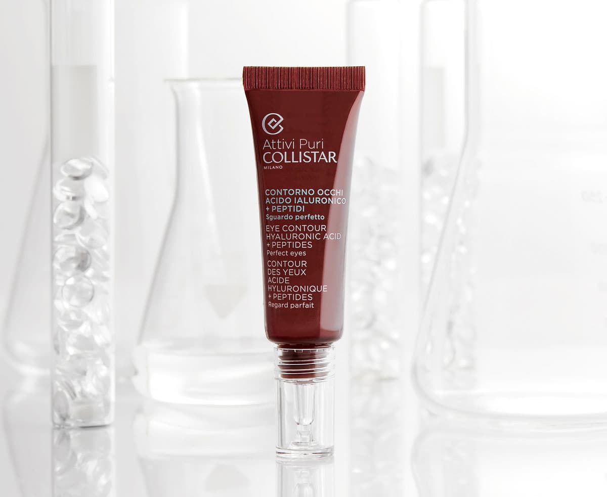 Hyaluronic Acid + Peptides Eye Contour Gel-Serum von Collistar für die Augenpartie mit Hyaluronsäure in 4 Molekulargewichten wirkt effektiv in unterschiedlichen Hautschichten, erzielt eine tiefenwirksame Feuchtigkeitsversorgung und einen sofortigen Liftingeffekt der Hautoberfläche. Verstärkt wird die Formel durch 3 Peptide, die liftend, gegen Tränensäcke und gegen Augenringe wirken. Zusätzlich ist das Serum mit einem kostbaren Ginsengextrakt angereichert, der den empfindlichen Augenbereich vor negativen Einflüssen durch das blaue Licht (elektronischer Geräte) schützt. Die Textur besteht zu 97 % aus Inhaltsstoffen natürlichen Ursprungs und enthält nur reinstes Wasser aus den Dolomiten. Ergebnis: Der Augenbereich erscheint sofort gestrafft, entspannt und geglättet. Nach und nach wird die Sichtbarkeit von Fältchen reduziert, geschwollene Bereiche gemildert und Augenringe minimiert. Die Augenpartie wirkt frisch und vitalisiert.