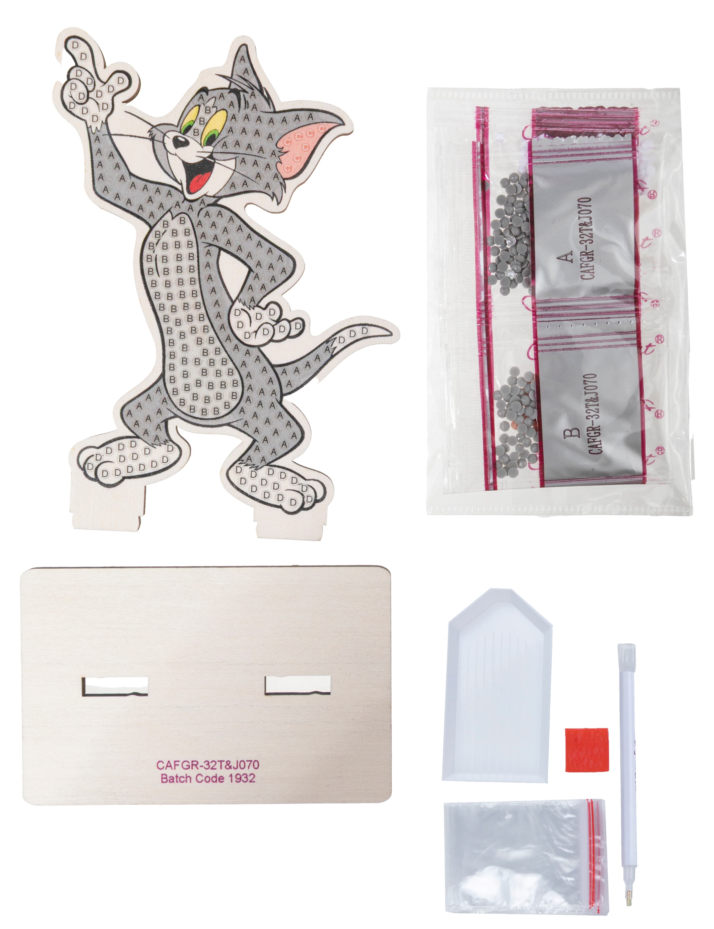 Gestalte einee funkelnde LOONEY TUNES-Figur nach einem vorgegebenen, Design auf einer Holzvorlage Alle Kretaivstes enthalten: 1 selbstklebende Holzvorlage, vorsortierte Beutel mit farbigen Kristallen, Stift zum Aufnehmen der Kristalle, Schale, Gelwachs, Bastelanleitung