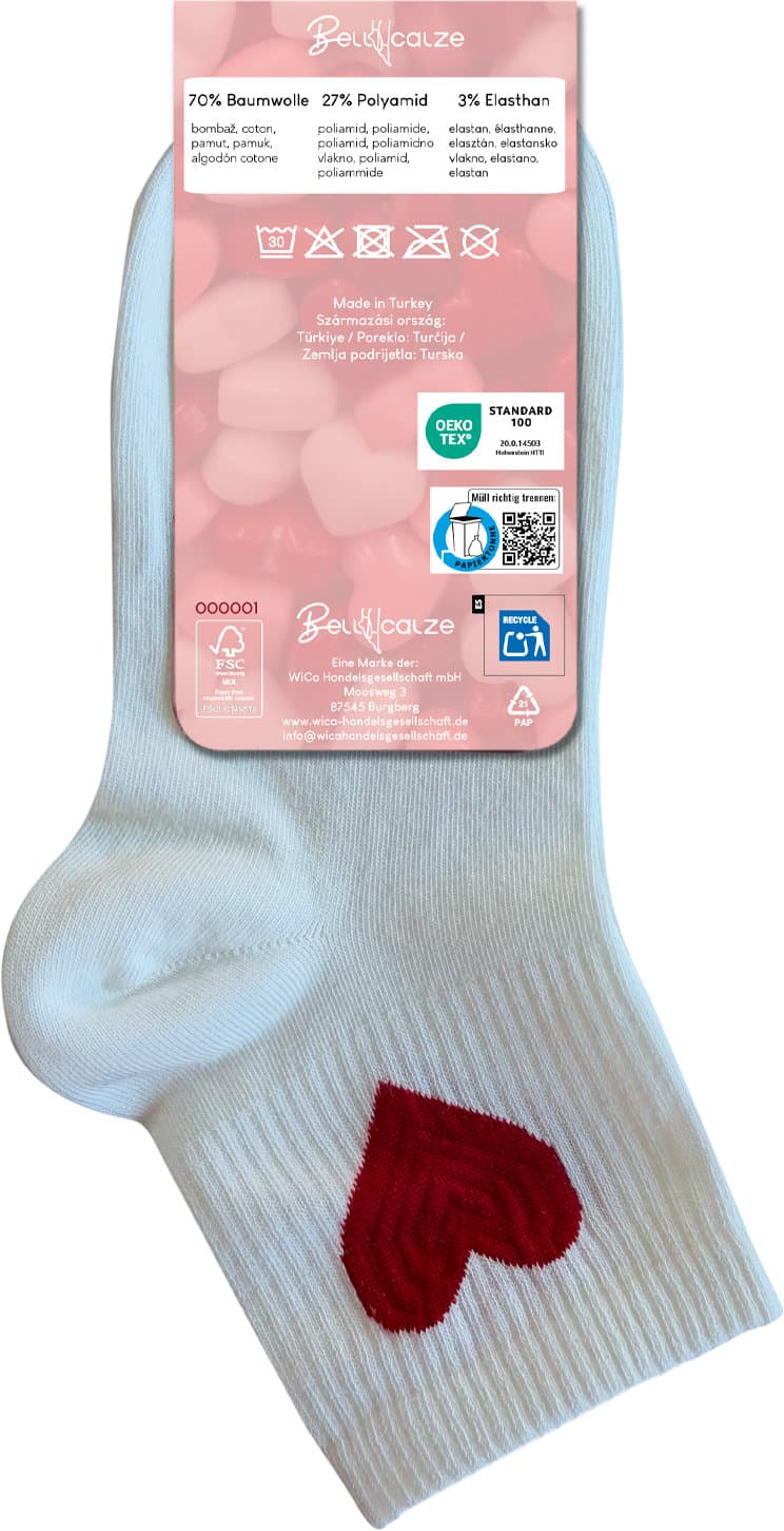 Damen Kurzsocken mit Herz-Design in verschiedenen Farben