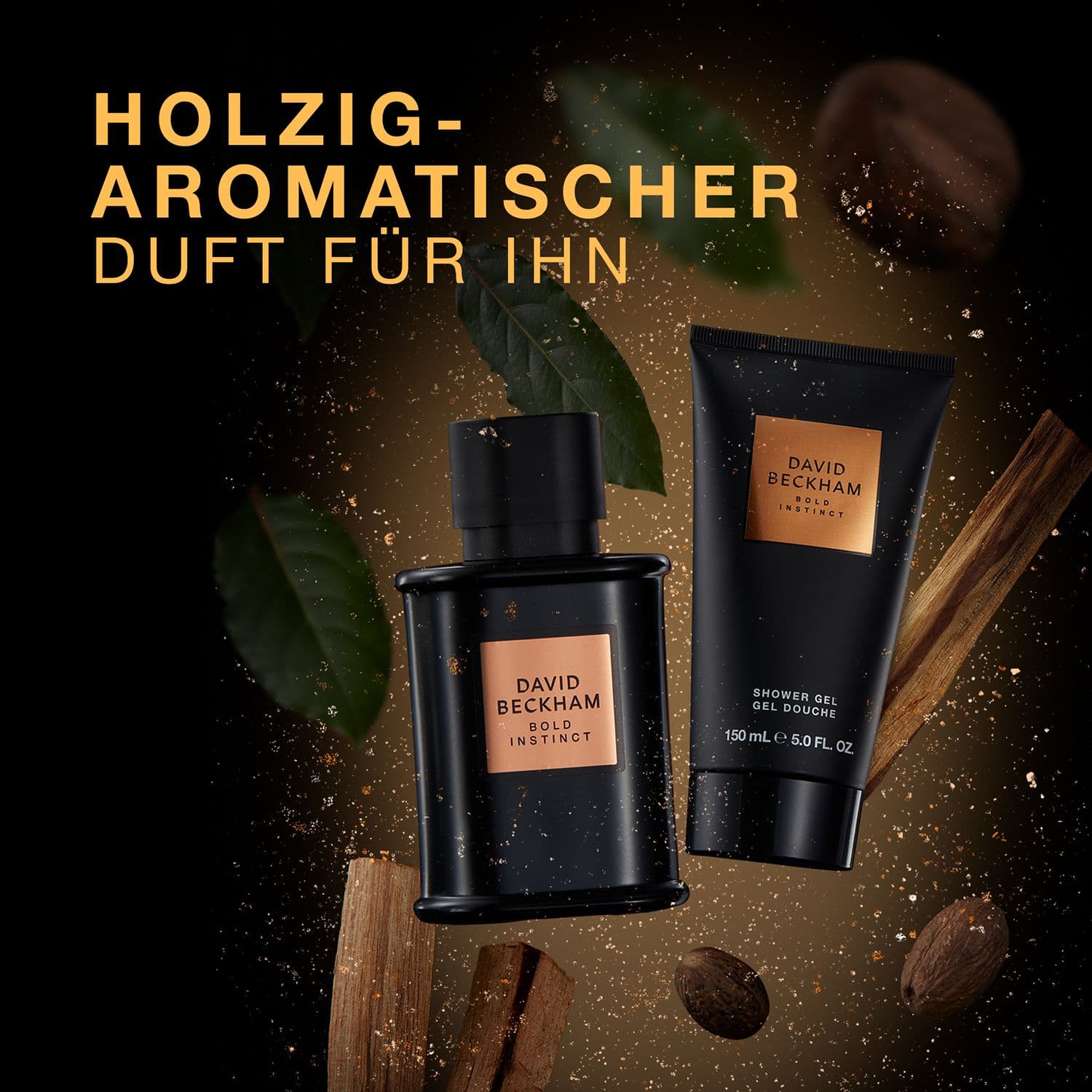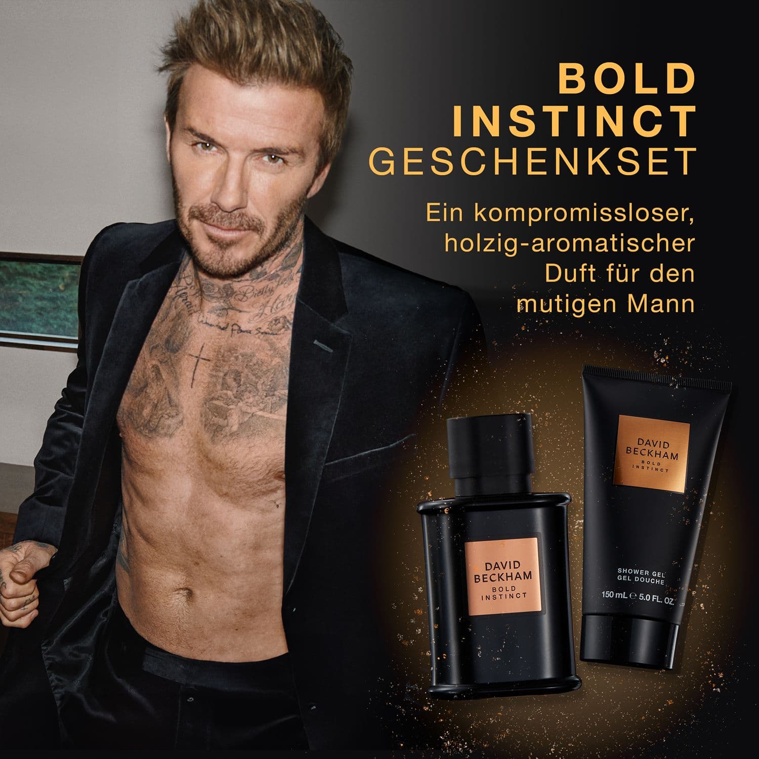 David Beckham Fragrances präsentiert das Bold Instinct Eau de Parfum- und Duschgel-Set für mutige Männer, die sich nicht scheuen, kühne Entscheidungen zu treffen. Dieses faszinierende holzig-aromatische David Beckham Parfum, das Kraft und Überzeugung verströmt, wurde von Davids kompromissloser Persönlichkeit inspiriert. Der kühn ausbalancierte Duft öffnet sich mit der Frische von Lorbeerblättern, bevor er die dezente, würzige Wärme von Muskatnuss offenbart. Die Basisnote zeichnet sich durch eine raffinierte Mischung rauchig-holziger Noten aus, um ein besonders maskulines Erlebnis zu bieten. Der auffällige Parfumflakon in undurchsichtigem Schwarz wird von einer schweren schwarzen Kappe gekrönt und durch ein metallisches kupferfarbenes Etikett vervollständigt, das ihm einen markanten und zugleich raffinierten Look verleiht. Dieses Set für Männer ist das ultimative Geschenk für Sie selbst oder einen lieben Menschen.