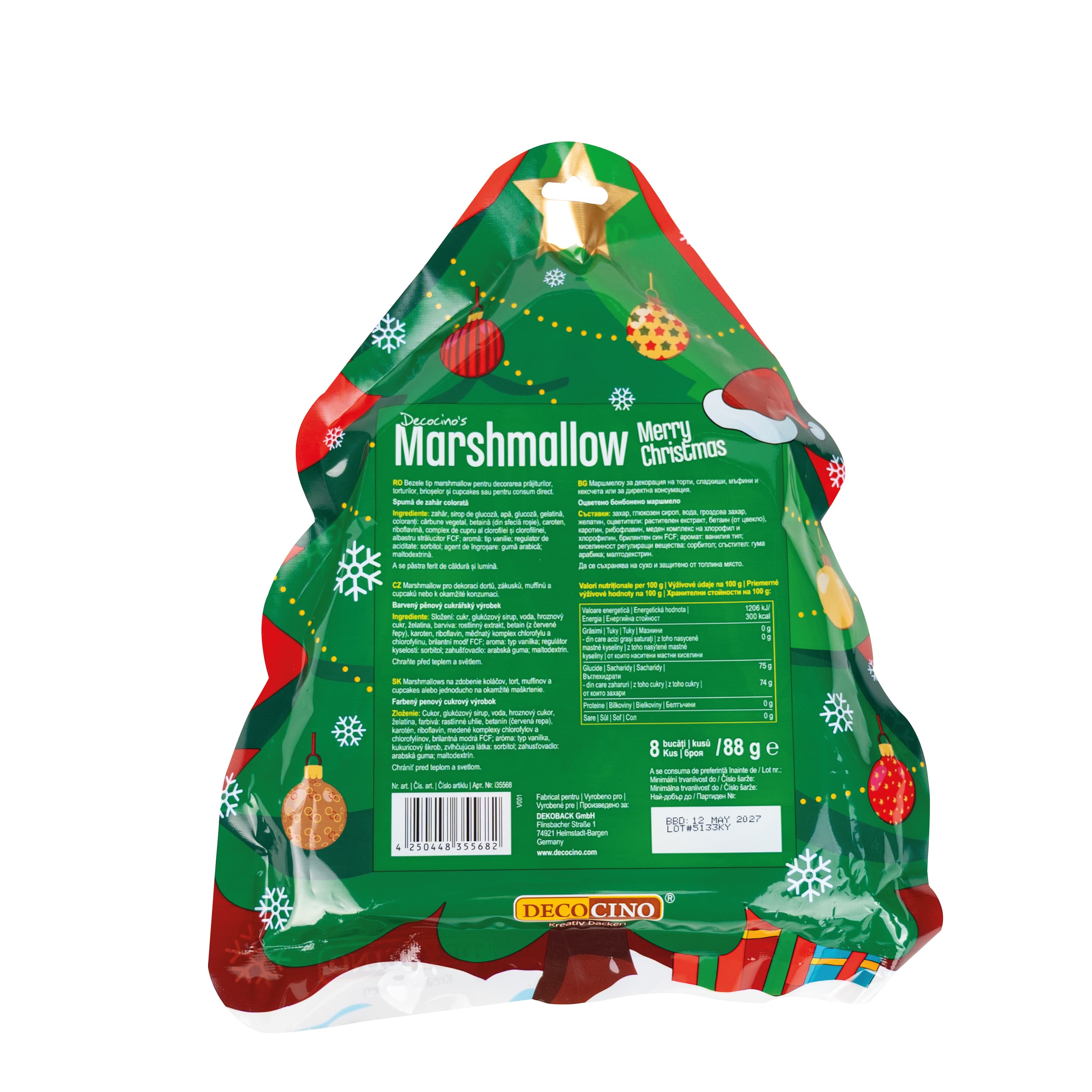 ZutatenZucker, Glukosesirup, Wasser, Traubenzucker, Gelatine, Farbstoffe: Pflanzenkohle, Betanin (Beetenrot), Carotine, Riboflavin, Kupferkomplexe der Chlorophylle und Chloropyhlline, Brillantblau FCF; Aroma: Typ Vanille, Maisstärke, Feuchthaltemittel: Sorbit; Verdickungsmittel: Gummi arabicum; Maltodextrin