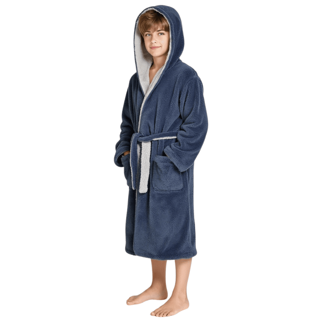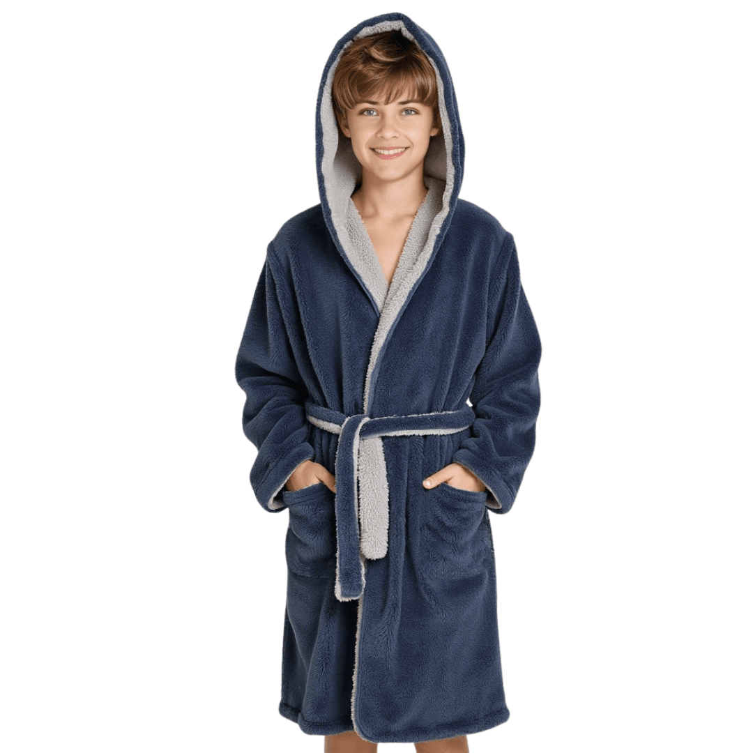 Kuscheliger Wende-Bademantel für Kinder – mit Kapuze, Taschen & Gürtel