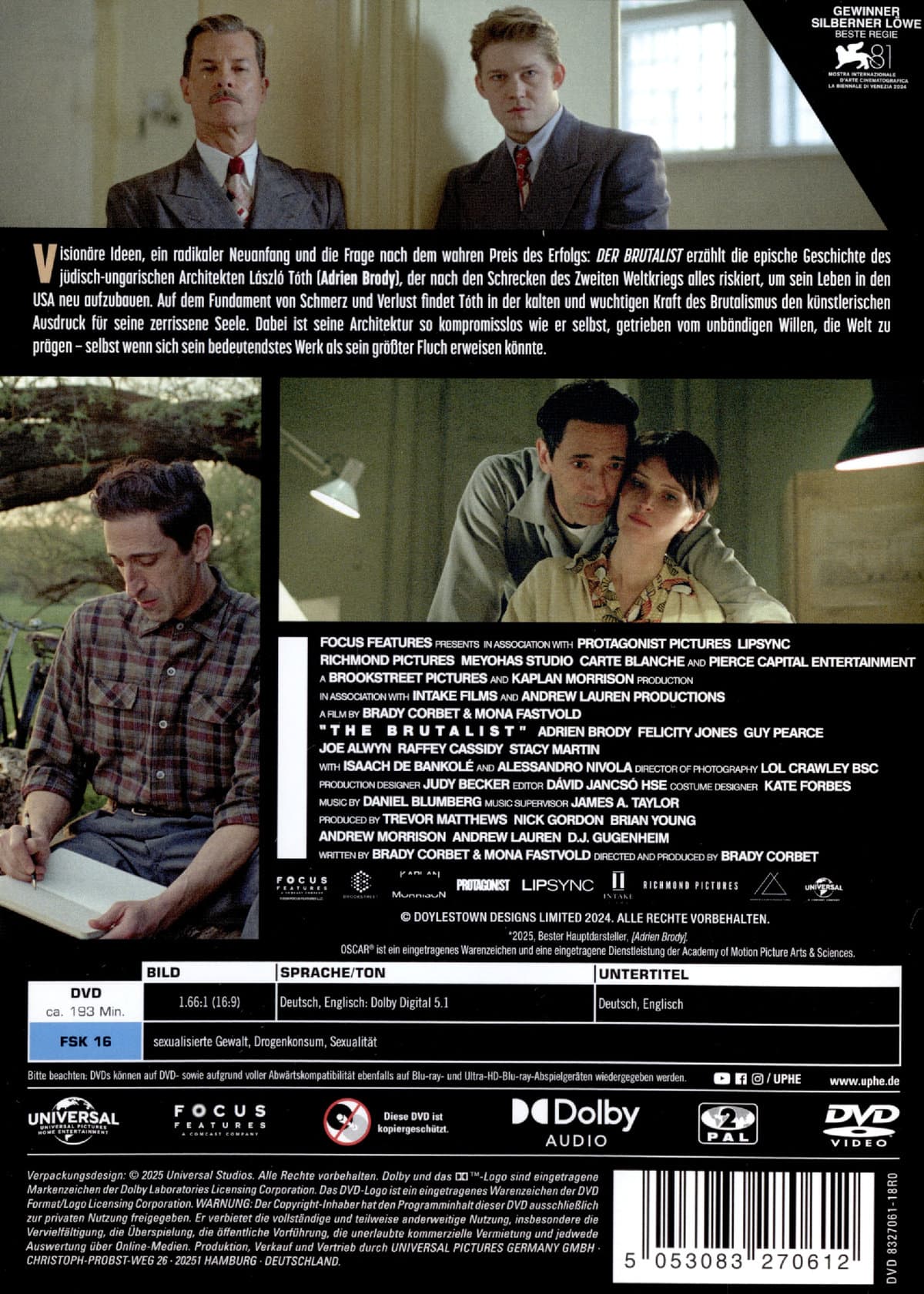 | Schauspieler | Adrien Brody, Felicity Jones, Guy Pearce, Joe Alwyn, Raffey Cassidy, Alessandro Nivola |