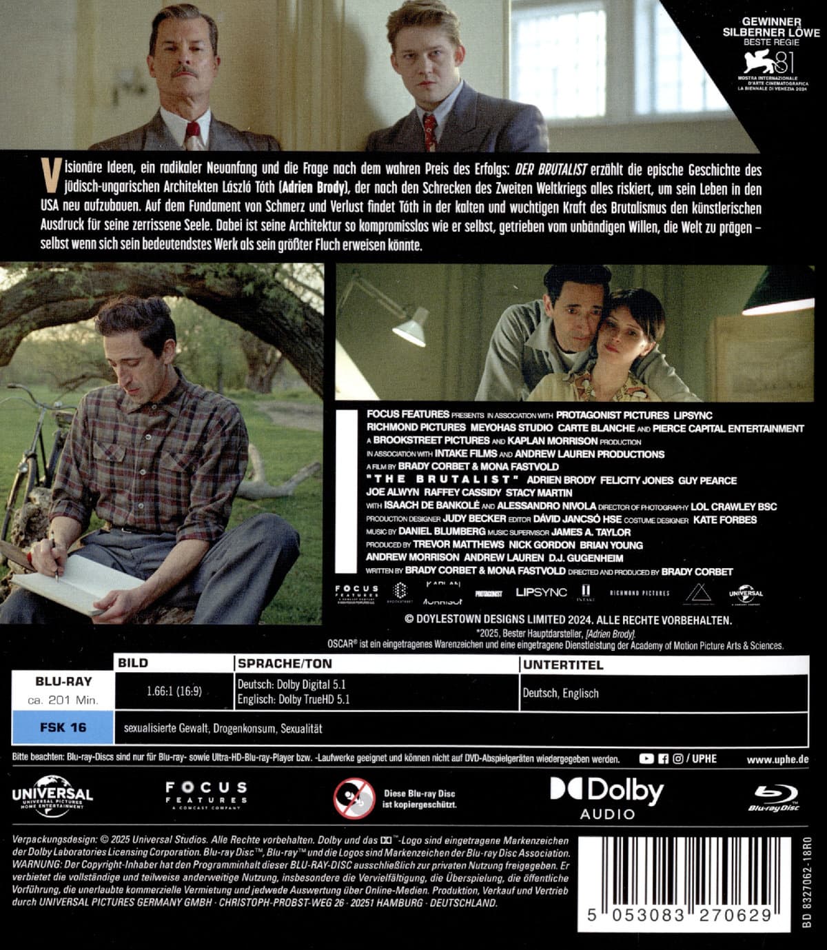 | Schauspieler | Adrien Brody, Felicity Jones, Guy Pearce, Joe Alwyn, Raffey Cassidy, Alessandro Nivola |