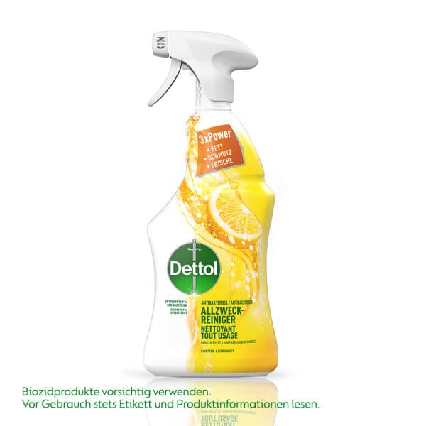 3x Power – beseitigt Fett sowie hartnäckigen Schmutz und hinterlässt einen angenehmen Limetten- und Citrusduft. Stark gegen Bakterien und Viren. Entfernt 99,9 % der Bakterien und folgende Viren: Influenza Typ A H1N1 und das COVID-19 Virus. Vielseitig anwendbar. Geeignet für Toilettensitze, Badewannen, Duschabtrennungen, Küchenflächen, Spülbecken, Armaturen und Kochfelder.
