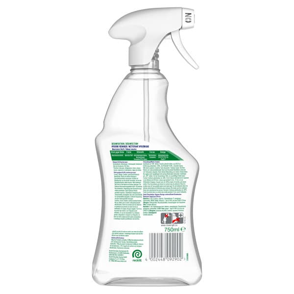 Kraftvolle Reinigung: Der antibakterielle Reiniger kann auf fast allen Oberflächen im Haushalt angewendet werden und sagt Keimen und Schmutz den Kampf an - für ein sauberes und sicheres Zuhause. Für die tägliche Reinigung im ganzen Haus: Das Desinfektionsspray beseitigt 99,9 % der Bakterien, spezielle Viren und 90 % der Allergene für besonders hygienische Sauberkeit. Effektiv in der Anwendung: Das Spray von Dettol reinigt ohne Farb- und Bleichmittel und kann daher auch für Flächen mit Lebensmittelkontakt oder im Kinderzimmer verwendet werden.