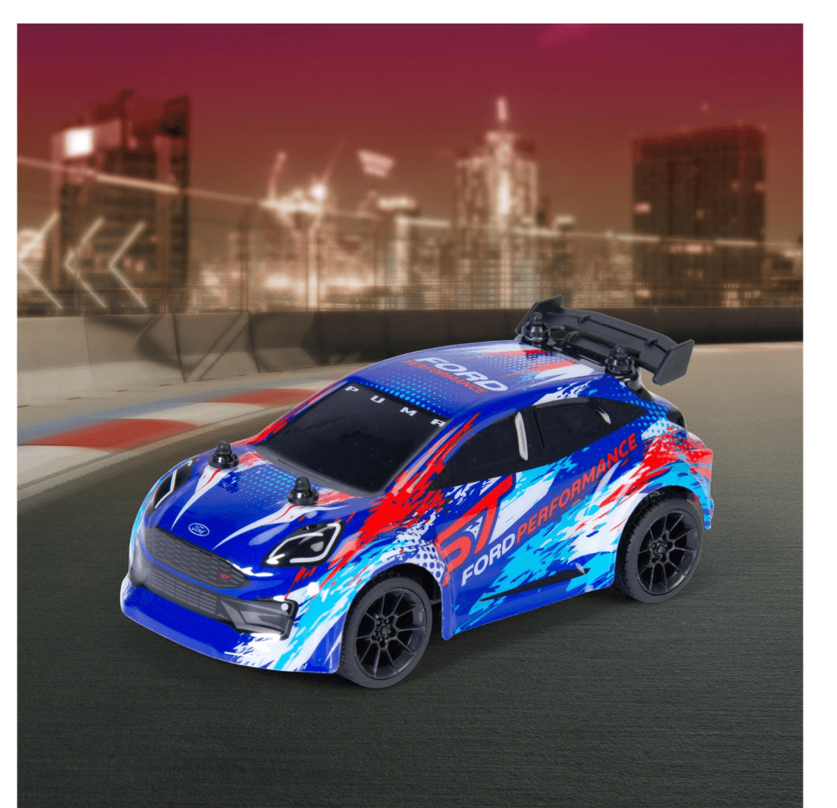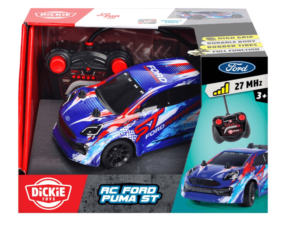 Mit dem Dickie Toys RC Ford Puma ST erleben Kinder ab 3 Jahren rasanten Fahrspaß im Kinderzimmer oder draußen im Garten. Das offiziell lizenzierte Modell des Ford Puma ST im Maßstab 1:28 überzeugt durch sein sportliches Design, robuste Verarbeitung und intuitive Steuerung. Dank der 2-Kanal-Fernbedienung mit 27 MHz lässt sich das Fahrzeug einfach vorwärts, rückwärts sowie nach links und rechts steuern – ideal für Einsteiger in die Welt der ferngesteuerten Fahrzeuge.
