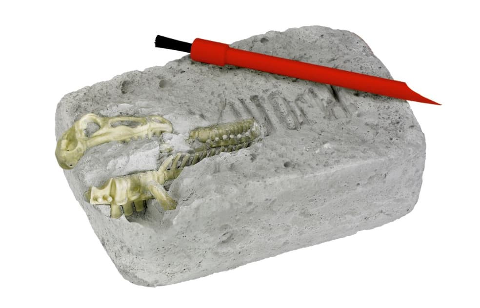 Dinosaurier-Fans aufgepasst: Verborgen in einem Gipsblock wartet ein 12-teiliges T-Rex-Skelett darauf, freigelegt zu werden. Stück für Stück werden mit dem beiliegenden Spatel und Pinsel die Einzelteile des Dinosauriers ans Tageslicht befördert - das erfordert nicht nur die Geduld und Aufmerksamkeit junger Forscher, sondern bietet auch eine hervorragende Gelegenheit, feinmotorische Fähigkeiten ganz spielerisch zu fördern. Dieses Ausgrabungsset von T-Rex-World ist ein tolles Geschenk für alle kleinen und großen Dinosaurier-Fans.