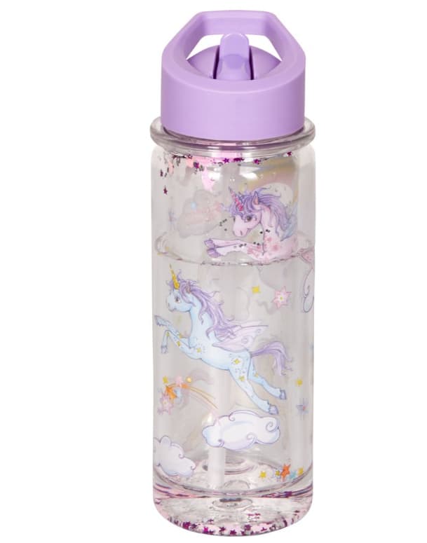 Diese glitzernde Trinkflasche von Die Spiegelburg bietet mit einem Fassungsvermögen von ca. 0,3 Litern ausreichend Platz für die Durstlöscher kleiner und großer Einhorn-Fans. Dank der funkelnden Glitzerteilchen in der Flaschenwand wird das Trinken gleichzeitig zum aufregenden Erlebnis. Mit bunten Motiven aus dem Einhorn-Paradies und einem leicht zuöffnenden Deckel aus bruchsicherem PP-Material. Einfach abspülen und die Flasche ist wieder bereit für den nächsten Einsatz in Kindergarten, Schule oder beim Ausflug in die Natur.
