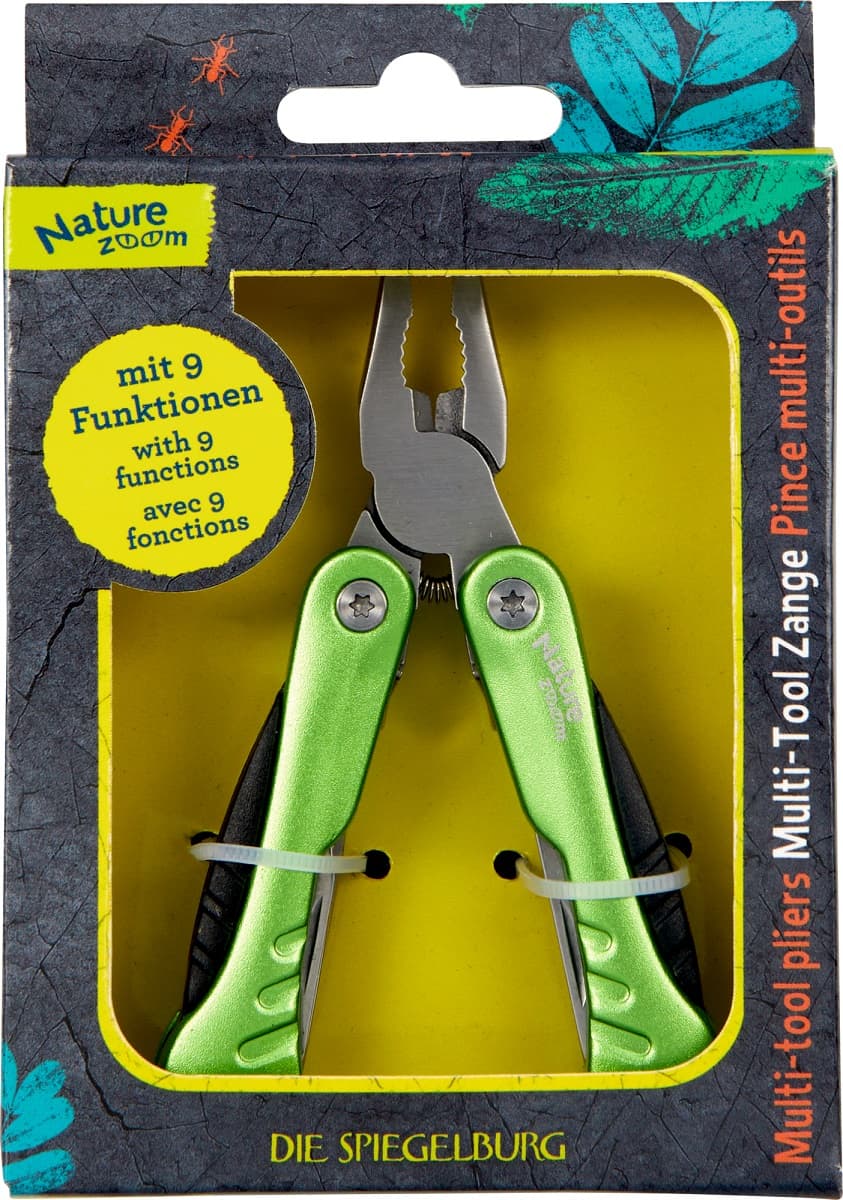 Neun Funktionen für kleine & große Abenteuer! Die Multi-Tool Zange - Nature Zoom von Die Spiegelburg ist ein praktischer Helfer bei arbeitsreiche Outdoor-Einsätzen. Ob Holz schnitzen, Seile kürzen oder kleine Reparaturen – mit Zange, Schraubendrehern, Säge, Feile, Messer & Co. ist alles dabei, um unterwegs bestens ausgerüstet zu sein. Zusammengeklappt ca. 3 x 7 x 1,5 cm, aufgeklappt ca. 5,5 x 10,5 x 1,5 cm – klein genug für jede Hosentasche!