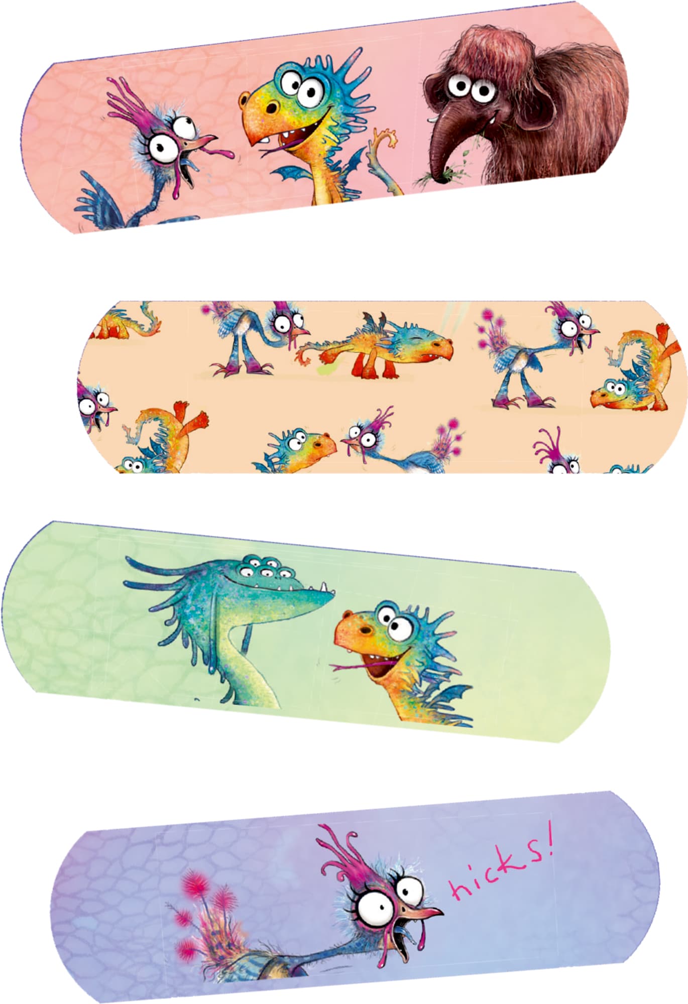 Knie aufgeschürft? Kleiner Kratzer an der Hand? Mit diesen niedlichen Pflastern mit Motiven aus der Welt von Furzipups, dem Knatterdrachen ist bald alles wieder gut! Das Set besteht aus 10 medizinischen Pflasterstrips mit farbigem Druck: hypoallergen, atmungsaktiv und wasserfest, in bunt bedrucktem Briefchen.