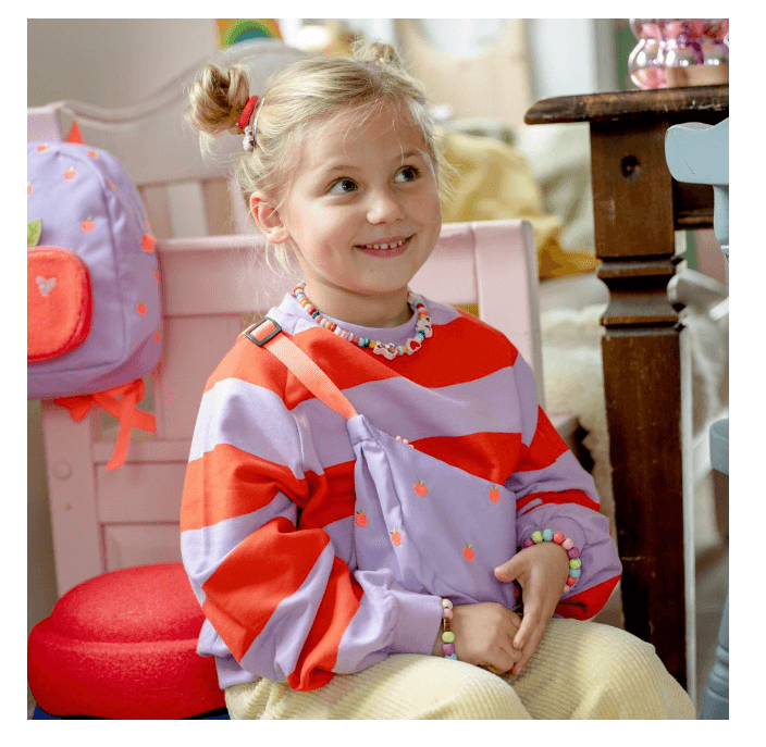 Mit kindgerechten Maßen von ca. 16 × 12 × 3 cm bietet die Tasche Platz für kleine Schätze, Haargummis, Taschentücher, Minispielzeug oder Mitbringsel für unterwegs. Das robuste Außen‑ und Innenmaterial besteht aus recyceltem Polyester, das die Tasche nicht nur alltagstauglich, sondern auch besonders pflegeleicht macht.