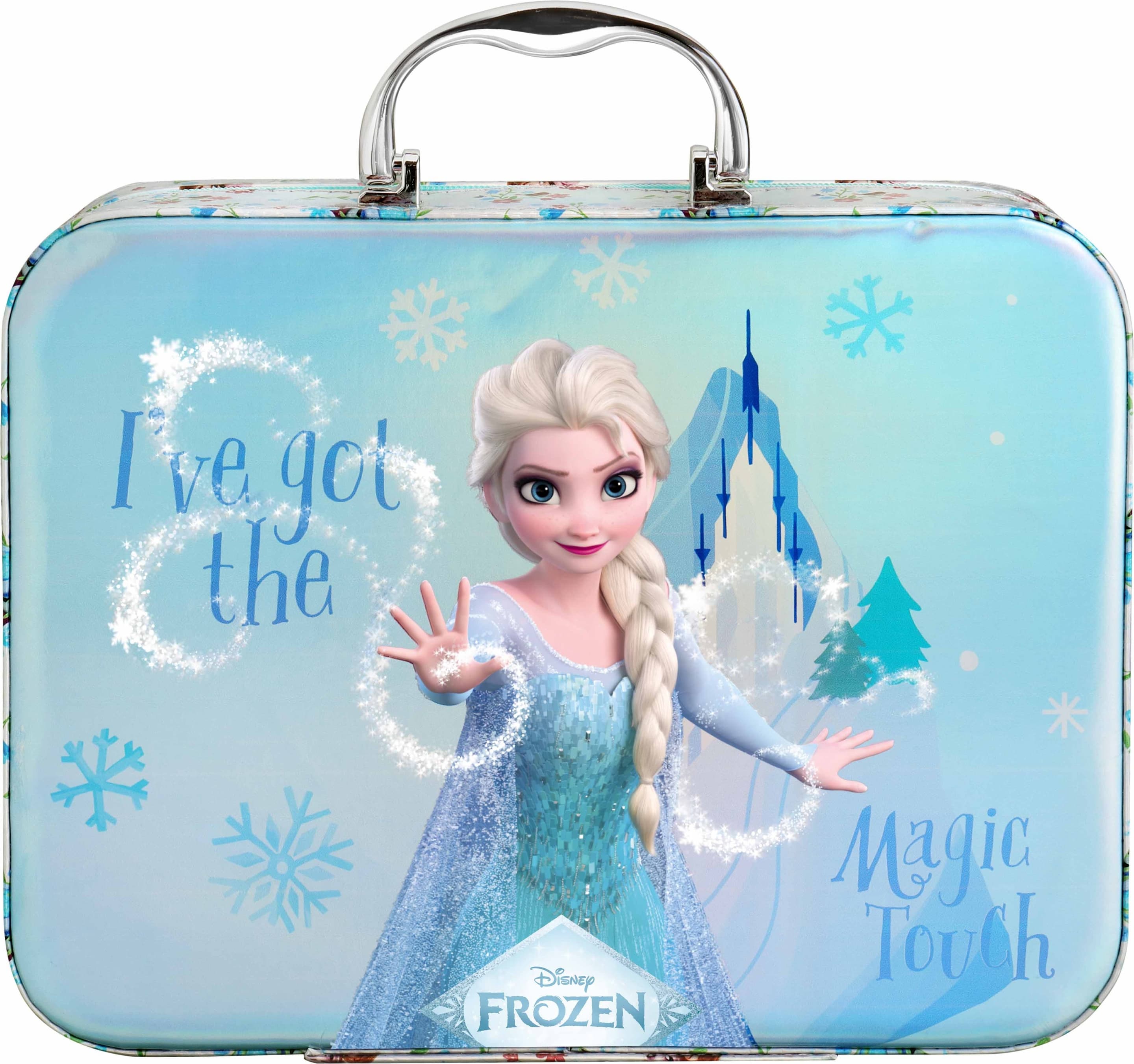 Der weich gepolsterte FROZEN Make-up Koffer begeistert kleine und größere Beauty-Fans. Im Inneren warten eine Lipgloss-Palette mit 5 glitzernden Farben, eine große Palette mit 12 Puder-Lidschatten, ein sanfter Rouge-Ton sowie eine Creme-Lidschatten-Palette mit 6 traumhaften Nuancen – ideal für Looks von zart bis farbenfroh.