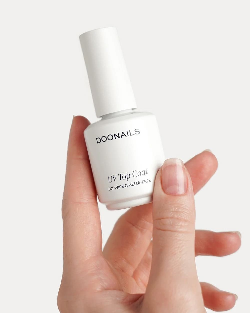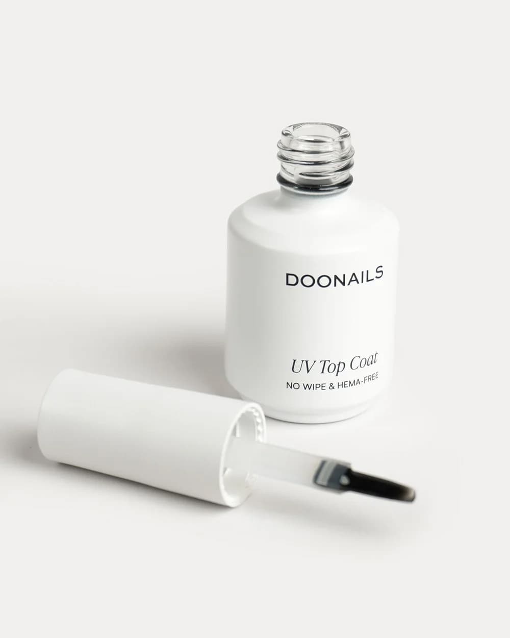 Der Doonails UV Top Coat verleiht den UV Gel Strips und Nailart-Looks einen intensiven, langanhaltenden Glanz und schützt deine Maniküre zuverlässig vor Kratzern. Das Ergebnis: bis zu drei Wochen schöner, stabiler Glanz – ganz ohne Verblassen. Die No Wipe Formel hinterlässt keine klebrige Schwitzschicht, sodass deine Maniküre nach dem Aushärten direkt fertig ist. Dank der mittel-dickflüssigen Konsistenz lässt sich der UV Top Coat einfach und präzise auftragen und sorgt für ein glattes, blasenfreies Finish wie aus dem Studio.