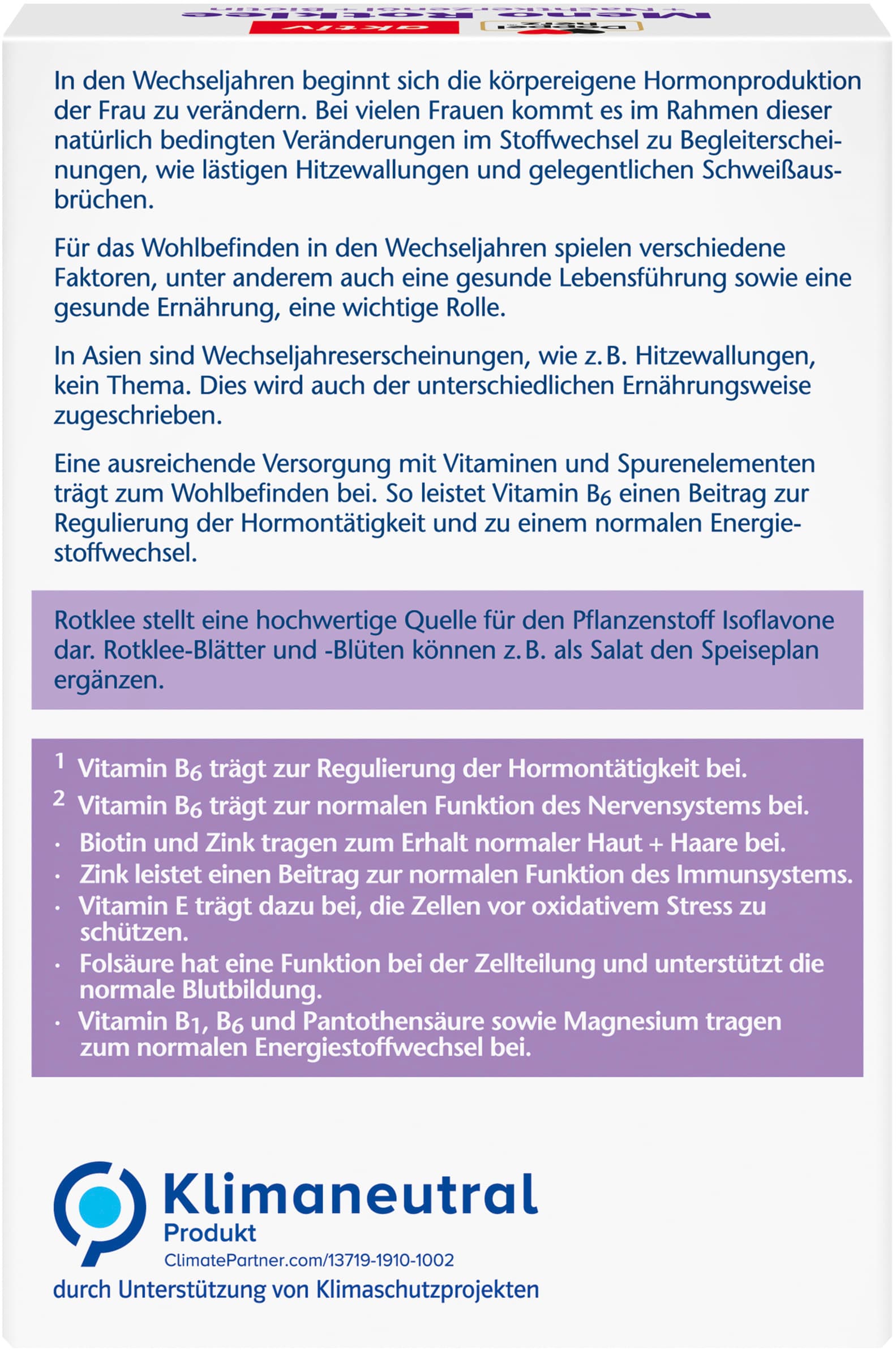 In den Wechseljahren beginnt sich die körpereigene Hormonproduktion der Frau zu verändern. Bei vielen Frauen kommt es im Rahmen dieser natürlich bedingten Veränderungen im Stoffwechsel zu Begleiterscheinungen, wie lästigen Hitzewallungen und gelegentlichen Schweißausbrüchen. Für das Wohlbefinden in den Wechseljahren spielen verschiedene Faktoren, unter anderem auch eine gesunde Lebensführung sowie eine gesunde Ernährung, eine wichtige Rolle. In Asien sind Wechseljahreserscheinungen, wie z. B. Hitzewallungen, kein Thema. Dies wird auch der unterschiedlichen Ernährungsweise zugeschrieben. Eine ausreichende Versorgung mit Vitaminen und Spurenelementen trägt zum Wohlbefinden bei. So leistet Vitamin B6 einen Beitrag zur Regulierung der Hormontätigkeit und zu einem normalen Energiestoffwechsel.Rotklee stellt eine hochwertige Quelle für den Pflanzenstoff Isoflavone dar. Rotklee-Blätter und -Blüten können z. B. als Salat den Speiseplan ergänzen.