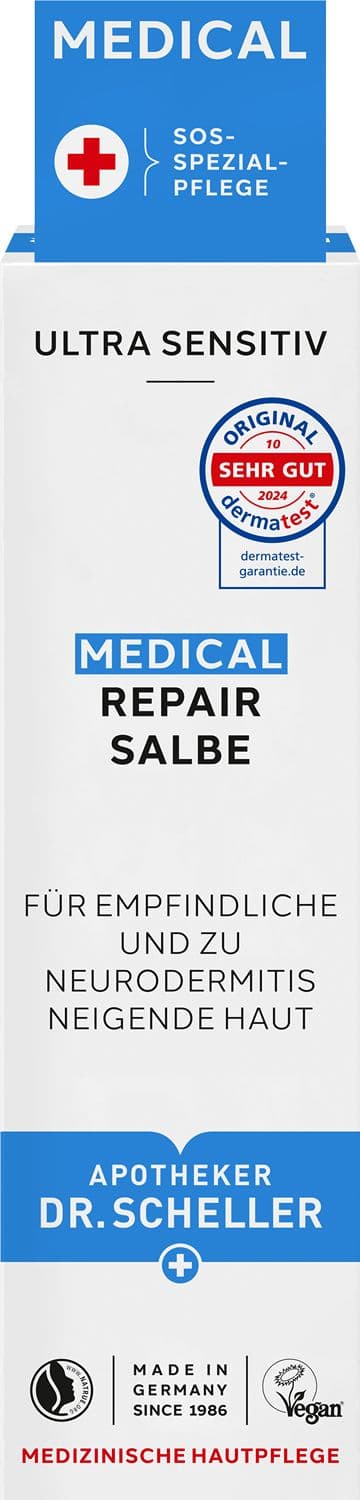 Reichhaltige Repair Salbe, wirkt intensiv rückfettend und trägt zur Regeneration einer geschädigten Hautbarriere bei.