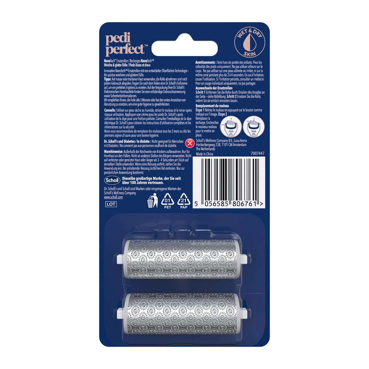 Innovative NanoTech™-Ersatzrollen mit neu entwickelter Oberflächen Technologie – für spürbar weichere und glattere Füße.