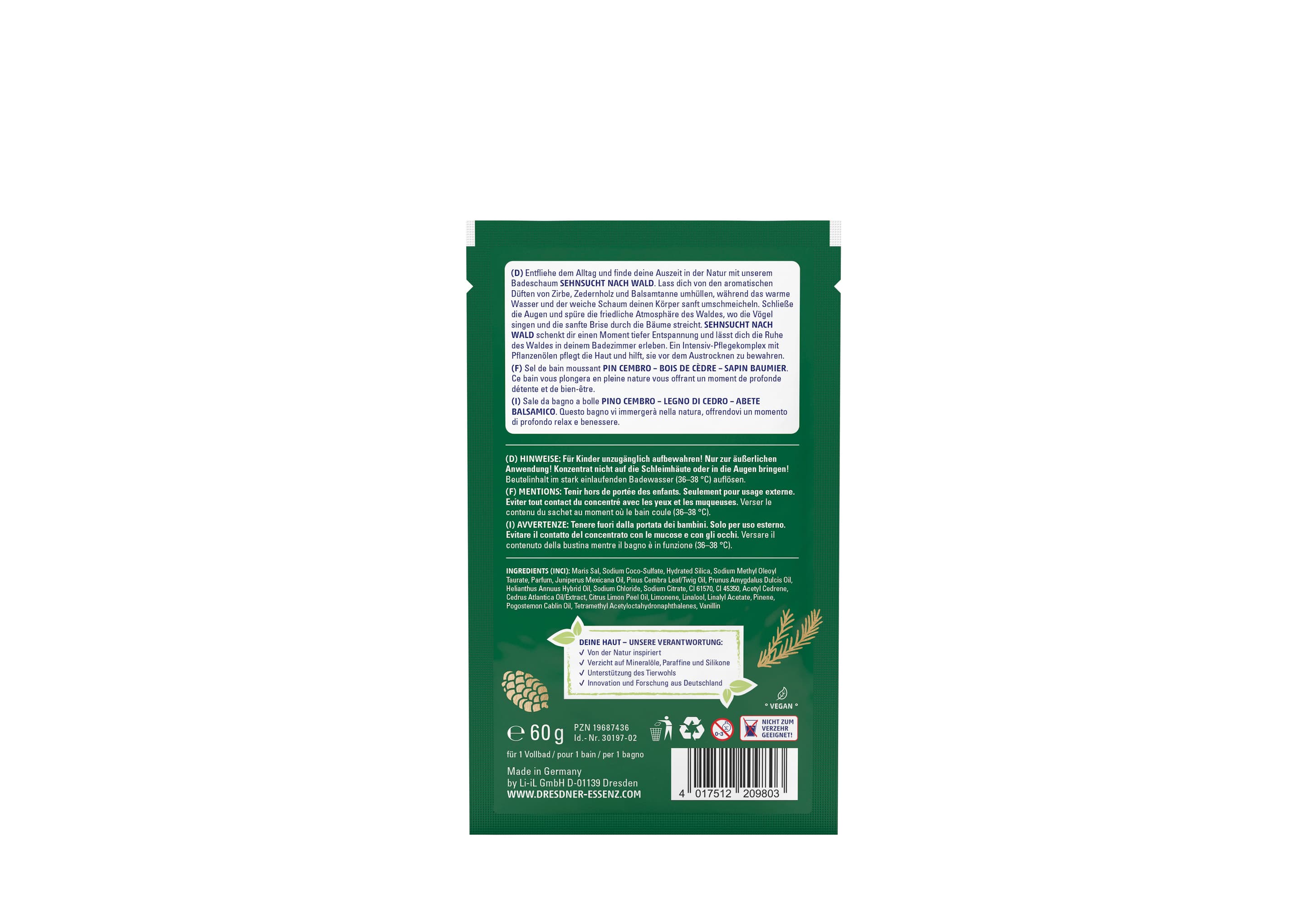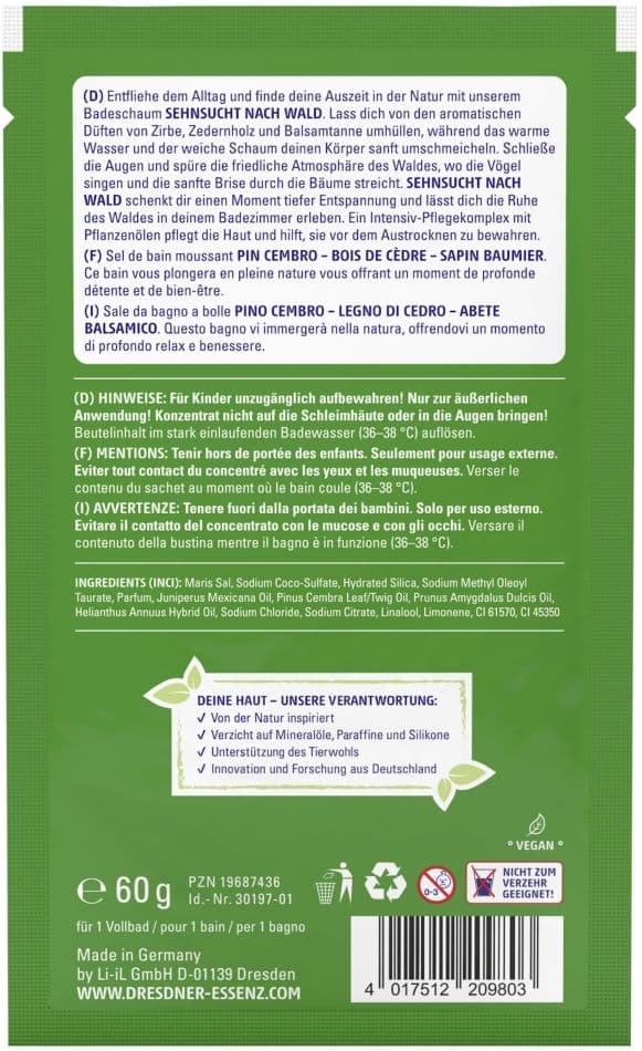 • Entfliehe dem Alltag und finde deine Auszeit in der Natur mit unserem Badeschaum SEHNSUCHT NACH WALD.