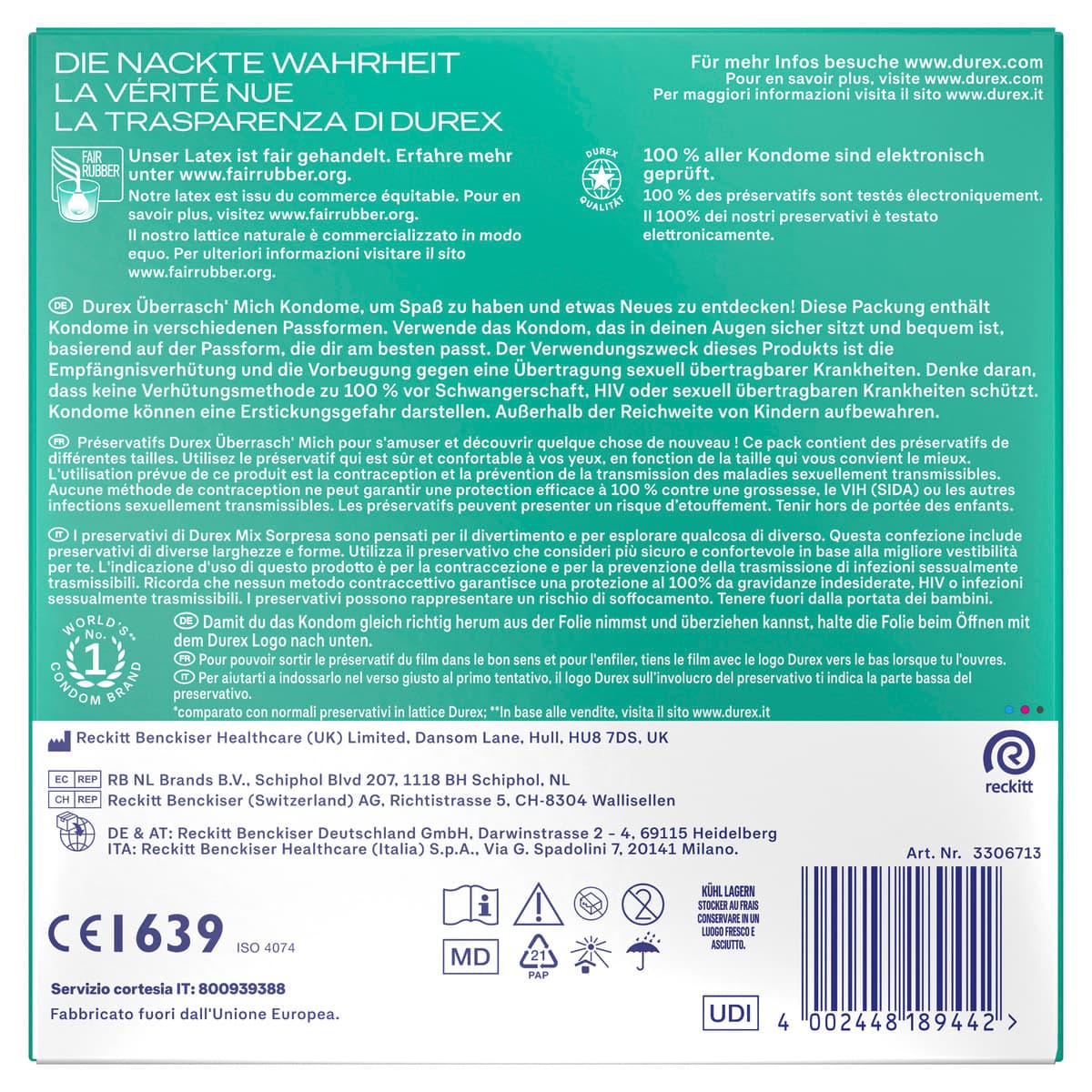 - LIEFERUMFANG: Die original Durex Überrasch Mich Mischpackung enthält 1 x 10 Kondome in vier verschiedenen, aufregenden Sorten
